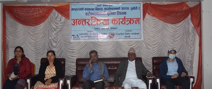 प्रदेश सरकारको औचित्यमाथी नागरिक तहबाट प्रश्न उठिरहेका वेला पूर्वपदाधिकारीहरुलाई सेवा सुविधा दिने गरि गण्डकी प्रदेश सरकारले विधेयक ल्याउन खोज्नुले संघियता प्रति नागरिकहरुमा वितृष्णा पैदा गराएको उहाँको भनाई थियो । कार्यक्रममा अधिवक्ता गिरधारी सुवेदीले गणतन्त्रको अभ्यास र नेपाल विषयक कार्यपत्र प्रस्तुत गर्दै गणतन्त्रलाई स्थागत गराउन राजनीतिक दल र नागरिक सबैको भुमिका महत्वपूर्ण रहने भनाई राख्नुभयो ।