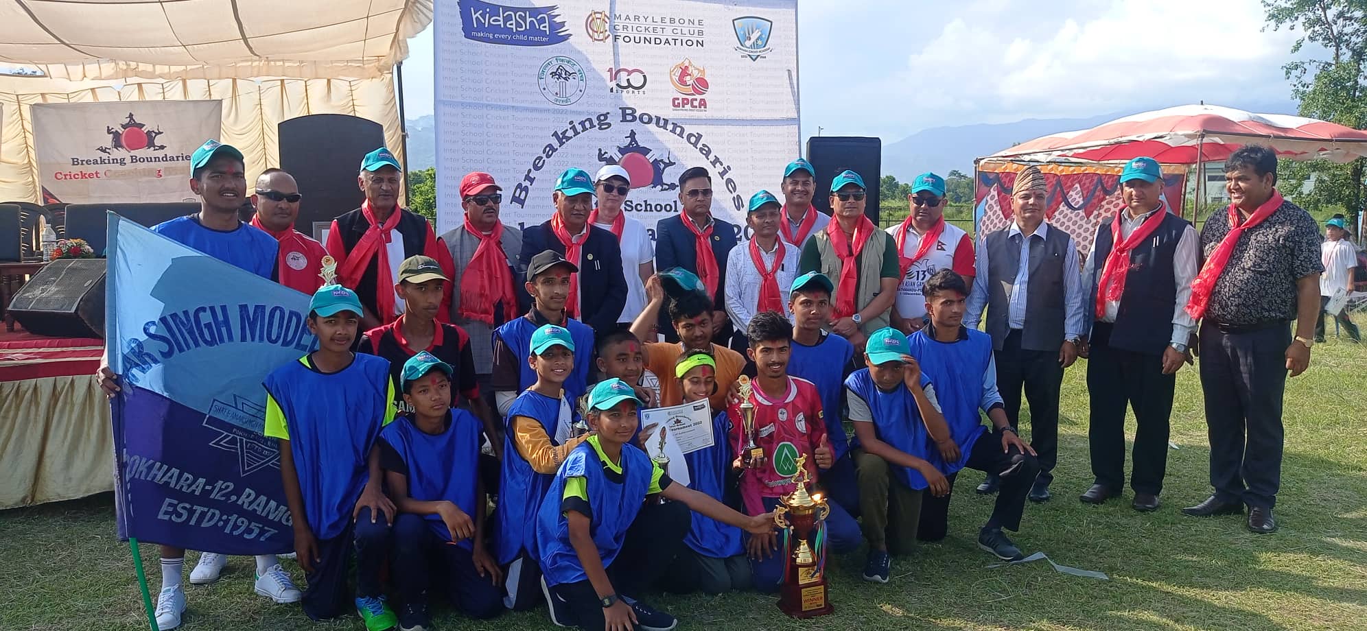 पोखरा, असार ५ गते ।ब्रेकिङ बाउण्ड्रिज एमसिसी अन्तर विद्यालय छात्र छात्रा क्रिकेट प्रतियोगिता अन्तर्गत छात्रतर्फ अमरसिंह तथा छात्रातर्फ भद्रकाली मावि विजयी भएका छन् । पोखरा क्रिकेट एकेडमीको आयोजना तथा मेरोलिवोन क्रिकेट क्लव फाउण्डेशन युके र किडासा युकेको प्राविधिक सहयोगमा सम्पन्न प्रतियोगिताको फाइनलमा छात्रतर्फ अम्मरसिंहले बाराही माविलाई ७६ रनको फराकिलो अन्तरले पराजित गरेको हो ।