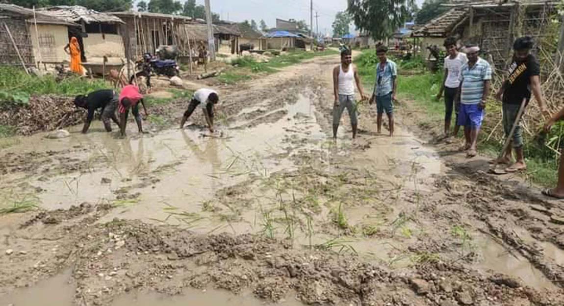 “अधुरो र अधकल्चो सडकमा हिलाम्मे, पानीका पोखरी जमेर आवतजावतमा सास्तीका साथै दुर्घटनाको जोखिम बढेको छ,” उहाँले भन्नुभयो, “निर्माण र मर्मतका लागि कसैले वास्ता नगरेपछि बाध्य भएर सडकमै रोपाइँ गरिएको हो ।” रणवाङ, नयाँबजार र सहश्रधाराका २० जनाभन्दा बढीले सडकमा सामूहिक धान रोपेर विरोध जनाएका हुन् ।