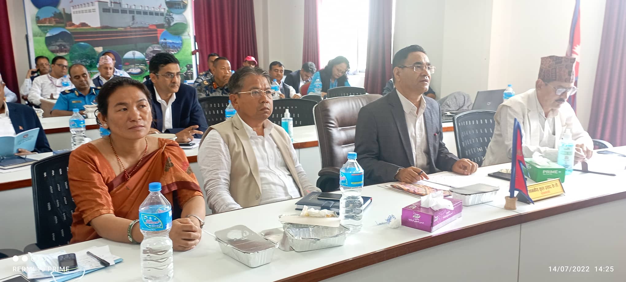 कार्यक्रममा लुम्बिनी प्रदेश भित्रका प्रमुख जिल्ला अधिकारीहरुले जिल्ला अधिकारीहरुले रिपोटिङ गर्नुभएको थियो । प्रमुख जिल्ला अधिकारी जिल्लाको बाढि, पहिरो, वर्षाको कारणले भएका क्षतिलाई न्यूनिकरण गर्न लागि रहेको बताउनुभयो । लुम्बिनी प्रदेशभित्रका आम नागरिकलाई सुरक्षित हुने गरी नै काम गरी जनताको जीवन रक्षाका लागि अगाडि बढ्न अनुरोध गर्नुभयो