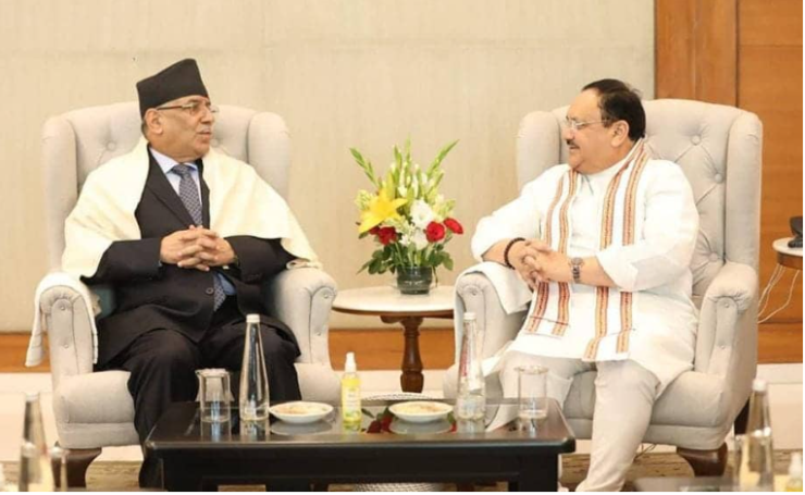 भारत भ्रमणमा रहनुभएका नेकपा(माओवादी केन्द्र)का अध्यक्ष पुष्पकमल दाहाल ‘प्रचण्ड’ र भारतीय जनता पार्टीका अध्यक्ष जेपी नड्डाबीच भेटवार्ता भएको छ ।