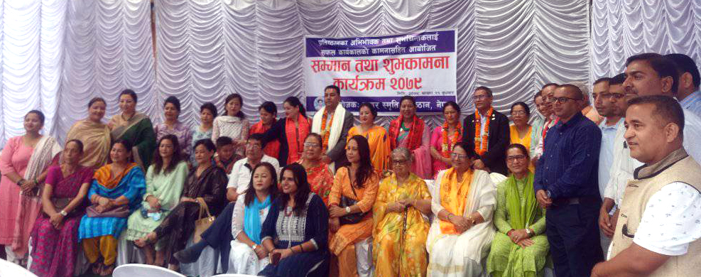 प्रतिष्ठानका संस्थापक अध्यक्ष रमा पराशर, निवर्तमान अध्यक्ष हिरादेवी बास्तोला र वर्तमान अध्यक्ष बिन्दु श्रेष्ठले संयुक्तरुपमा दोसल्ला, माला, खादा, बुँकीसहित सम्मान अर्पण गरेका हुन् । सम्मानका साथसाथै संयुक्त रुपमा केक काटेर आफ्ना कार्यकालका कार्य यस्तै स्वादिष्ट र रुचिपूर्ण हुन भन्ने शुभेच्छासमेत व्यक्त गरिएको थियो ।