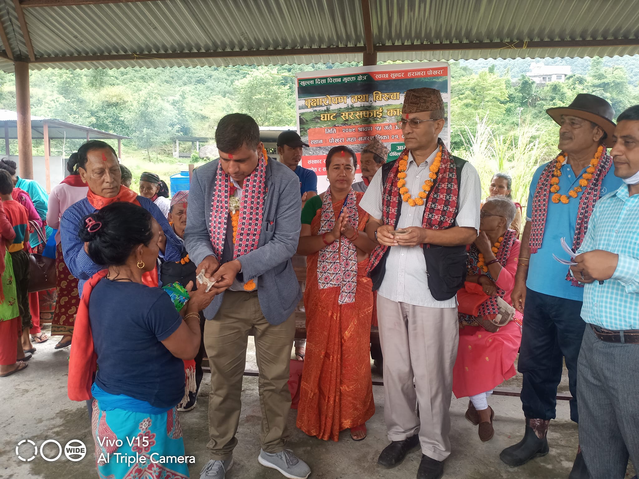 कार्यक्रममा वडाकै बासिन्दा भई हाल अमेरिकामा रहनुभएका समाजसेवी गोपाल रायमाझी र श्रीमति शशी रायमाझीले घाटको संरक्षण तथा विकासका लागि नगद १ लाख ८ हजार रुपैयाँ सहयोग गर्नुभयो । त्यसैगरी रायमाझी दम्पतिले स्थानीय अशक्त र दलित नौं महिलाहरु जनालाई जनही नगद ७ हजार सहयोग रकम पनि हस्तान्तरण गर्नुभयो । राजमाझी दम्पतिले स्थानीय रघैचौर आमा समूहलाई नगद २१ हजार, भैरवकोट मन्दिरलाई नगद ११ हजार, केशरमाला मन्दिरलाई नगद ११ हजार तथा रघैचौर भगेँर देउता मन्दिरलाई पनि नगद ११ हजार रुपैँयाँ सहयोग गर्नुभयो ।