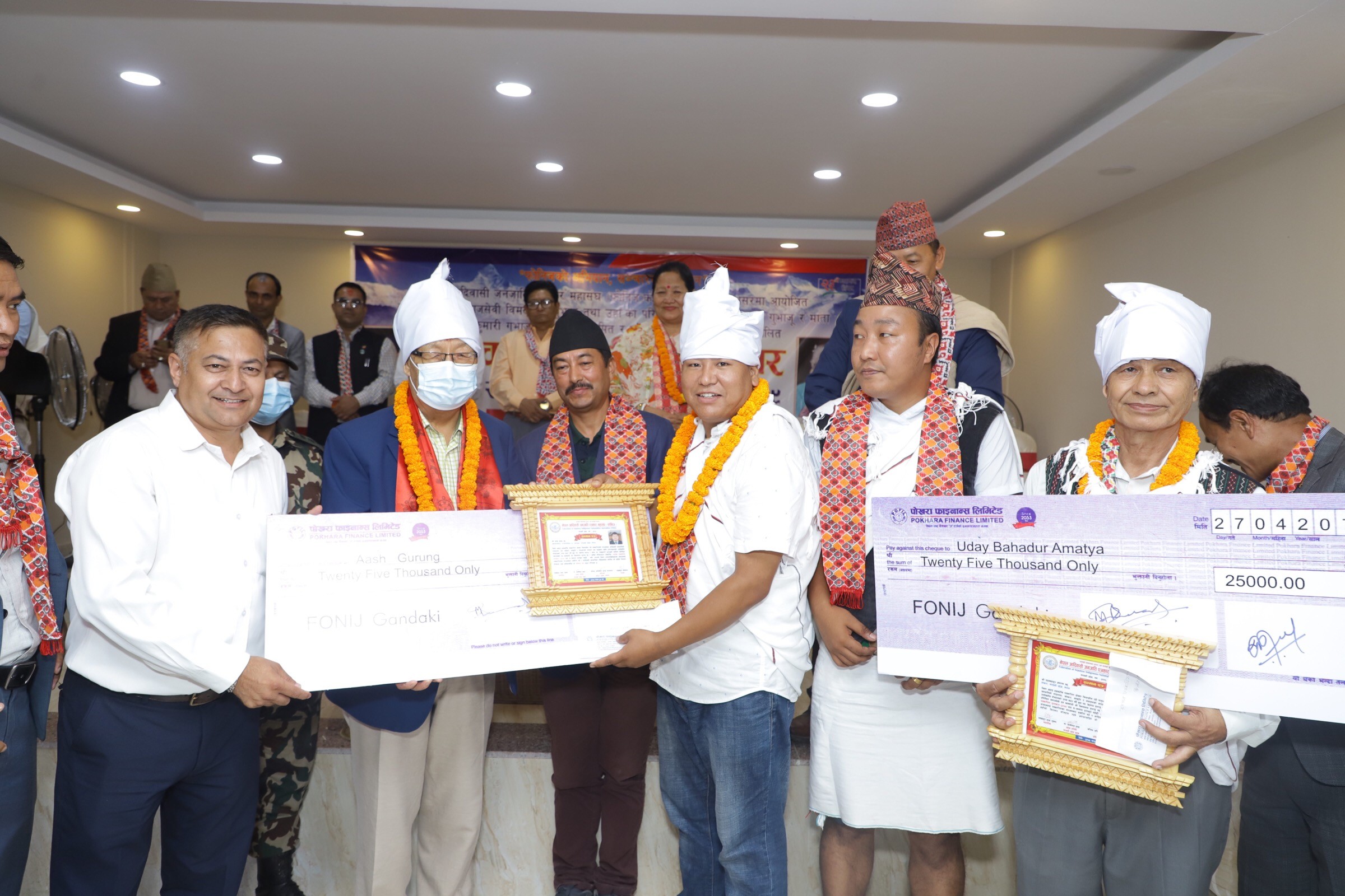 गण्डकी प्रदेशका प्रदेश प्रमुख पृथ्वीमान गुरुङले पुरस्कृतद्वय अमात्य र गुरुङलाई जनही दोसल्ला, सम्मानपत्रसहित नगद रु २५ हजार प्रदान गरे ।