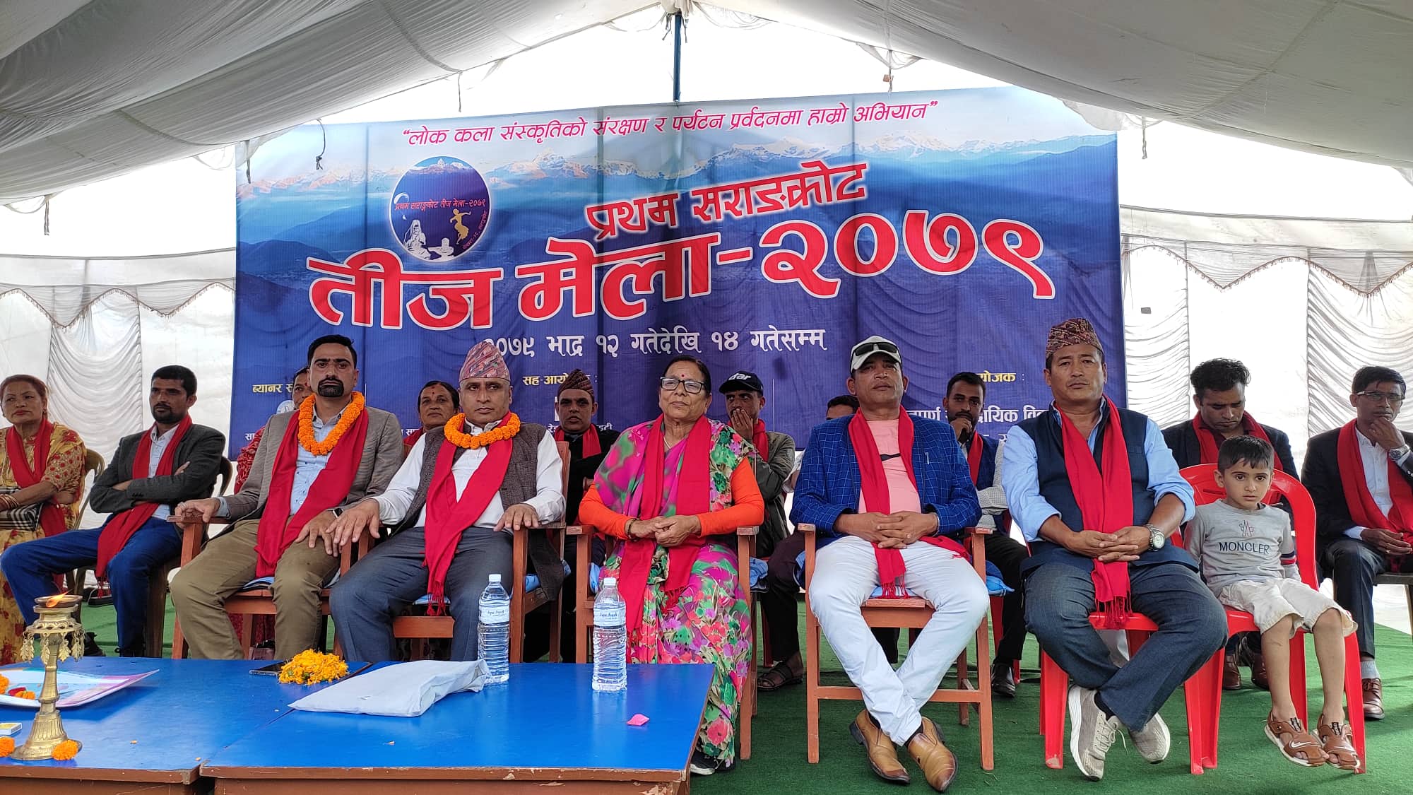 सराङकोटको अन्नपूर्ण सामुदायिक विकास मञ्च, महिला साना किसान कृषि सहकारी, नेपाल रेडक्रस सोसाइटी, लायन्स क्लब अफ पोखरा सराङकोटको संयुक्त आयोजनामा उक्त मेला भदौं १४ गतेसम्म संचालन हुने भएको बलराम तिमिल्सिनाले बताए । तिज गित प्रतियोगिताको विजेतालाई ६६ हजार ६ सय ६६, उपविजेतालाई ३३ हजार ३ सय ३३ र तेश्रो हुनेलाई २२ हजार २ सय २२ रुपैया प्रदान गरिने भएको छ ।