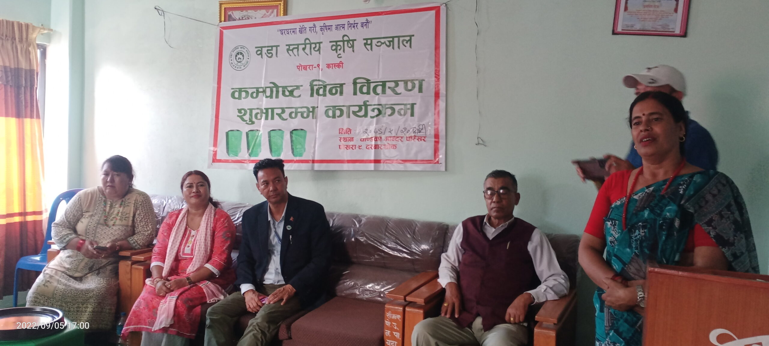 सो अवसरमा वडा सदस्य लक्ष्मी पहारी र निवर्तमान वडा सदस्य राममाया मानन्धरले घरको फोहर घरमै मल वनाउन दिदीवहिनीहरुको महत्वपूर्ण भूमिका हुने वताएका थिए ।वडा कृषि सञ्जालकी अध्यक्ष विमला रानाभाटले घरमा निस्कने कुहीने फोहरबाट मल वनाई तरकारी तथा फुलका वेर्नामा प्रयोग गर्न सकिने वताउँदै वडामा कम्पोष्ट विन वितरण गरेको वताइन्।