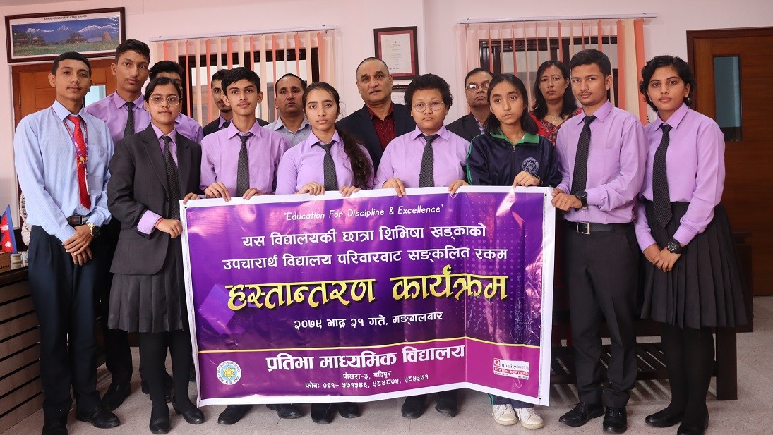 विद्यालयका विद्यार्थीहरुले अध्यक्ष पौडेल, प्रबन्ध निर्देशक बलबहादुर थापा, निर्देशक किरण सापकोटा, प्रिन्सिपल विश्वगोपाल पराजुलीलगायतको उपस्थितमा सिबिसाकी आमा शिखा श्रेष्ठलाई उक्त रकम हस्तान्तरण गरेका हुन् ।