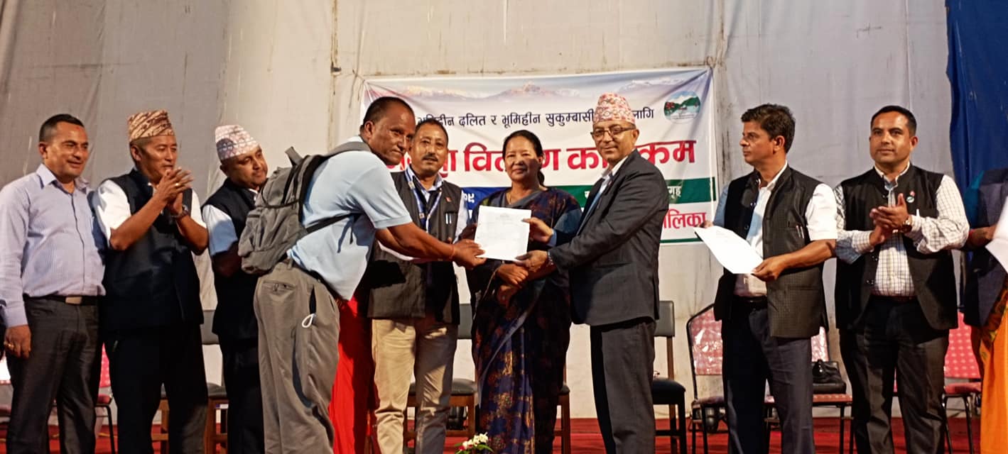 पोखराका ३३ वटै वडामा भूमिहीन दलित र भूमिहीन सुकुम्बासीहरुलाई निस्सा वितरण सुरु