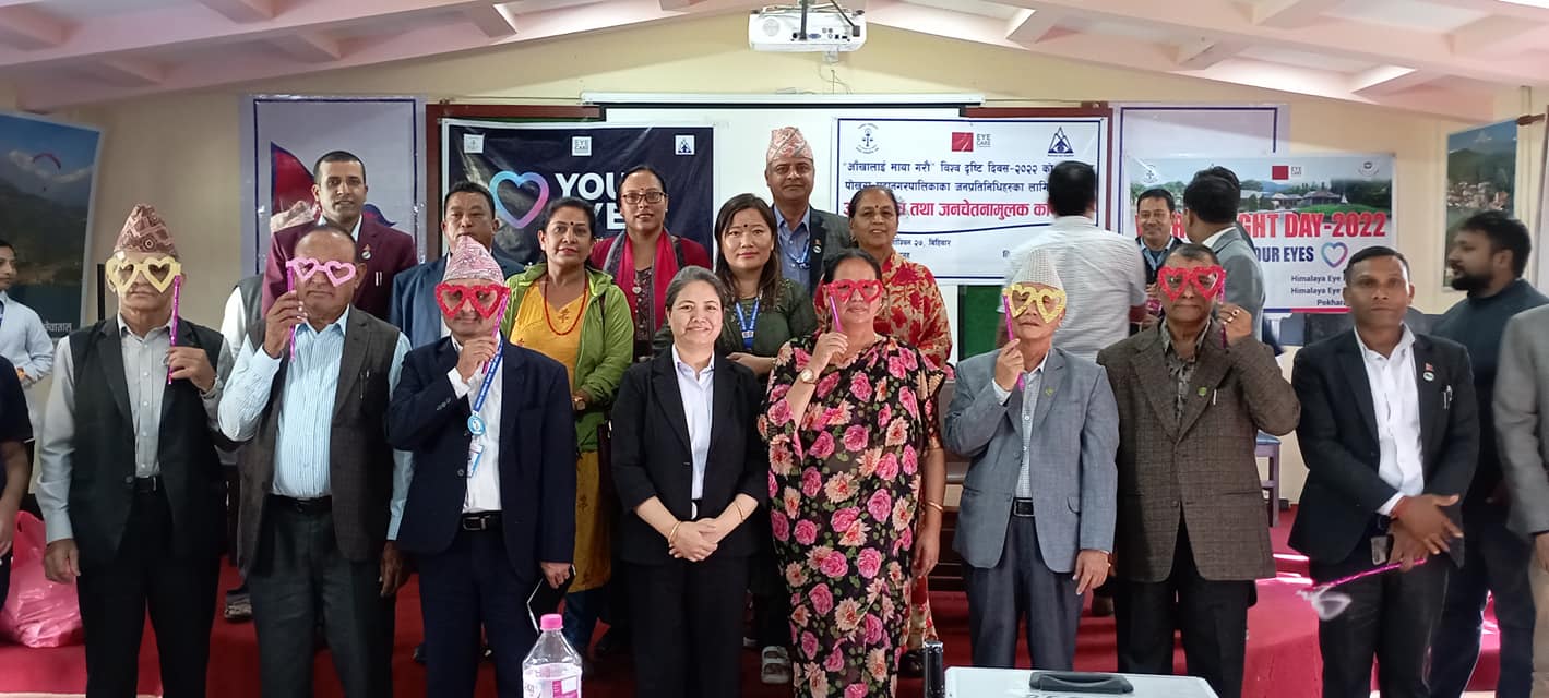 पोखरा, असोज २७ गते । “आँखालाई माया गरौ” भन्ने नारा सहित पोखरामा विवश्व दृष्टि दिवस मनाइएको छ । दिवसको अवसरमा हिमालयन आँखा अस्पतालको आयोजनामा पोखरा महानगरपालिकाका जनप्रतिनिधिहरुको आँखा जाँच तथा जनचेतनामुलक कार्यक्रम आयोजना गरियो ।कार्यक्रममा बोल्दै पोखरा महानगरपालिकाका उपप्रमुख मञ्जुदेवी गुरुङले आँखालाई माया गर्नुपर्नेमा जोड दिनुभयो । मानिसको महत्वपूर्ण अंगका रुपमा रहेकको आँखालाई समय समयमा जाँच गराउनुपर्नेमा जोड दिनुभयो ।