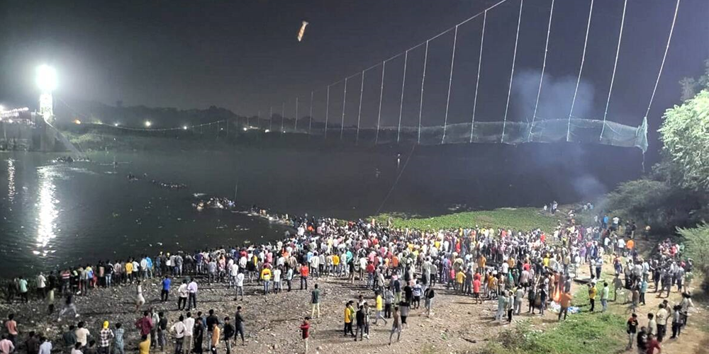 आइतबार राति मच्छुनदीको झोलुङ्गे पुल भाँच्चिदा कम्तीमा एक सय ४१ जनाको मृत्यु भएको थियो भने एक सयभन्दा बढी हराइरहेका छन् । छट पर्व मनाउने क्रममा भीडले खचाखच मोरबीको पुल भाँच्चिएको थियो । दुर्घटनामा ज्यान गुमाएकामा अधिकांश महिला, बालबालिका र वृद्ध छन् । बेलाइतको शासनकालमा १९ औँ शताब्दीमा बनेको उक्त पुल मर्मतसम्भारपछि गत सातादेखि सञ्चालन गरिएको थियो ।