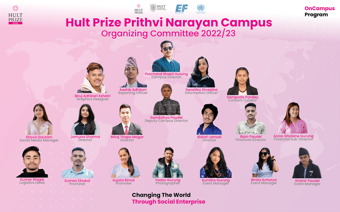 पोखरा, कात्तिक १९गते ।हल्ट प्राइज पृथ्वी नारायण क्याम्पस’ नामक स्वयंसेवक समूह गठन भएको छ । कार्याकारी समिति गत असोज २ गते गठन भएको हो । प्रचण्ड शक्ती गुरुङको नेतृत्वमा १९ सदस्यीय कायसमिति गठन भएको हो । यस समितिका क्याम्पस डायरेक्टर, बिएएलएलबि पाँचौं सेमेस्टरका विद्यार्थी प्रचण्ड शक्ती गुरुङ रहेका छन् ।