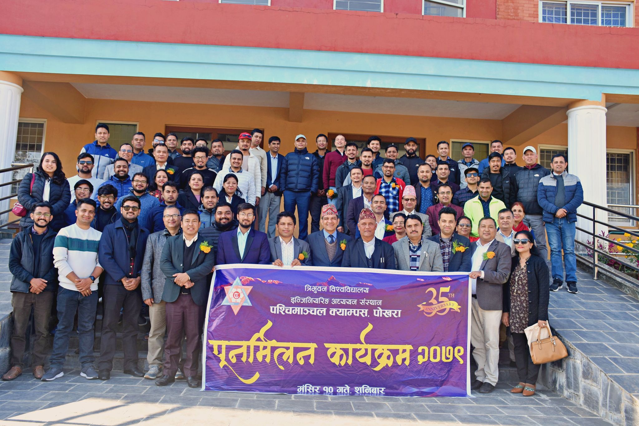 ई.अ.स पश्चिमाञ्चल क्याम्पस, लामाचौर पोखरामा शनिबार पूर्वविद्यार्र्थीहरूसँग पुर्नमिलन कार्यक्रम (२०७९) सम्पन्न भएको छ । पश्चिमाञ्चल क्याम्पसको ३५ औं वार्षिक उत्सवको पूर्वसन्ध्यामा क्याम्पस प्रशासनद्धारा स्थापनाकालदेखि अहिलेसम्म क्याम्पसमा अध्ययन गरेका सम्पूर्ण विद्यार्र्थीहरूसँग पुनर्मिलन गर्ने उद्देश्यले उक्त कार्यक्रम सञ्चालन गरिएको थियो ।