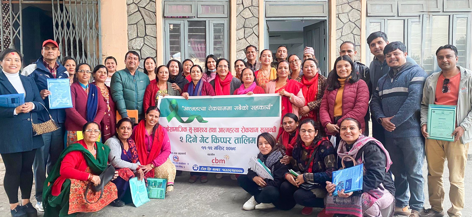 पोखरा, १२ मंसिर । मनोसामाजिक सुस्वास्थय तथा आत्महत्या रोकथाम सम्वन्धि ‘गेट किप्पर तालिम’ सोमबार सम्पन्न भएको छ । आत्महत्या रोकथाममा सबैको सहकार्य भन्ने मुल नाराका साथ कोशिश (राष्ट्रिय मानसिक स्वास्थ्य स्वावलम्वन संगठन) नामक संस्थाको आयोजनामा उक्त तालिम सम्पन्न भएको हो ।
