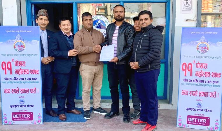 सो अवसरमा वोल्दै समाधान राष्ट्रिय दैनिकका बजार ब्यवस्थापक श्रीप्रसाद पोखरेलले विगतका महोत्सवहरुमा जस्तै एघारौं संस्करणको पोखरा महोत्सवमा समेत समाधान राष्ट्रिय दैनिकले सहकार्य गर्न पाउदा खुसी लागेको वताए । सामाजिक क्षेत्रमा अग्रणी स्थानमा रहेको युनाईटेड क्लव संगको सहकार्यले समाधान परिवारलाई समेत सामाजिक काममा सहभागी हुन पाउनु आफैमा गर्वको कुरा रहेको उनको भनाइ रहेको थियो ।