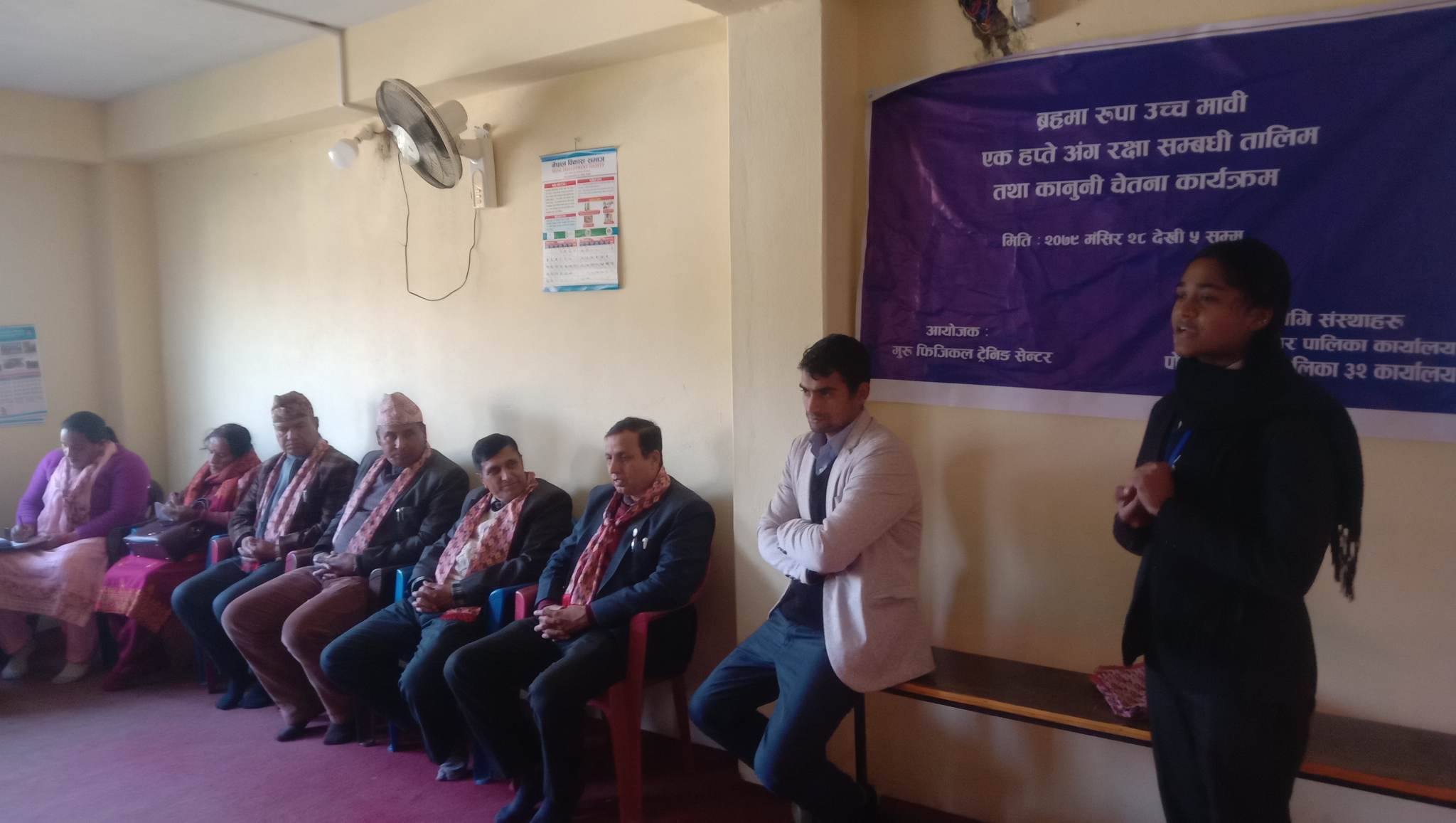 कक्षा ७ देखि १२ सम्मका बिध्यार्थीहरुलाइ लक्षीत गरी आयोजना गरीएको तालीममा करिब ५ सय विद्यार्थी सहभागी रहेका छन् । गुरु फिजिकल ट्रेनिङ सेन्टरका संचालक सुरेश अधिकारीको अध्यक्षतामा सम्पन्न कार्यक्रमको संचालन विजय नेपालीले गरेका थिए ।