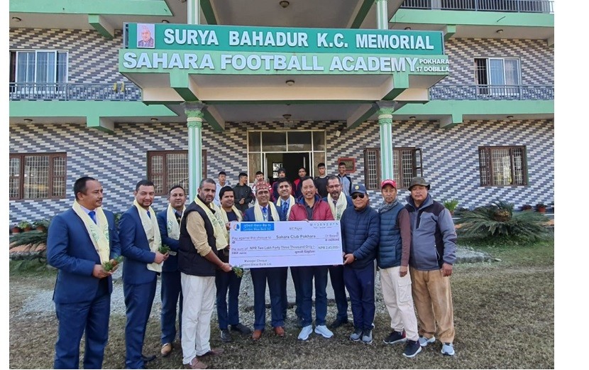 पोखरा,पुस १३ गते ।लुम्बिनी विकास बैंकले सामाजिक उत्तरदायित्व अन्तरगत सहारा एकेडेमी पोखराद्वारा पोखरा — १७ दोबिल्लामा सञ्चालित सहारा फुटबल एकेडेमीलाई आर्थिक सहायोग गरेको छ । बैंकले सहारा एकेडेमीका लागि २ लाख ४३ हजार सहयोग हस्तान्तरण गरेको छ । बैंकका सञ्चालक रामचन्द्र सिग्देलले सहारा क्लबका अध्यक्ष हरिराम गुरुङलाई रकमको चेक हस्तान्तरण गरे ।