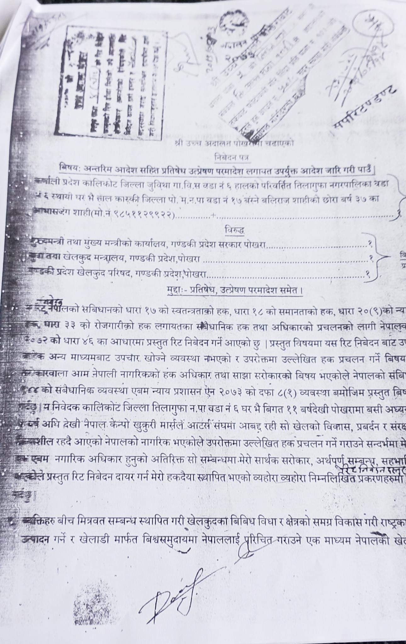 पाेखरा, पुस १४ गते ।प्रदेश खेलकुद परिषद गण्डकीको सदस्य सचिबको नियुक्ति प्रक्रिया रोक्न उच्च अदालत पोखराले अन्तरिम आदेश जारी गरेको छ ।