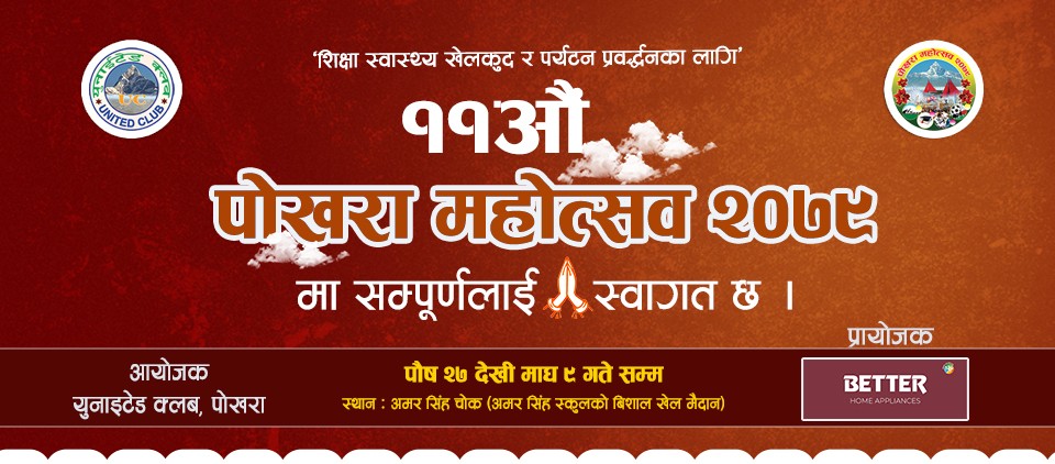 पोखरा पुस २० गते ।एघारौं पोखरा महोत्सवमा स्वरोजगार तालिम प्रदान गरिने भएको छ । आगमी पुषको २७ देखि माघको ९ गते सम्म पोखराको अमरसिंह चौरमा आयोजना हुने एघारौं संस्करणको पोखरा महोत्सवमा विशेष गरी पिछडिएका, जनजाति र एकल महिलाहरुलाई लक्षित गरी स्वरोजगार तालिम प्रदान गर्न लागिएको हो ।