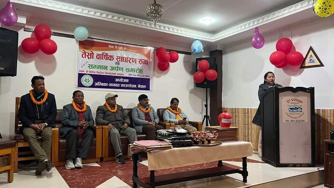 पोखरा, पुस २४ गते ।अम्विका भागवत् फाउण्डेशन नेपालको तेस्रो साधारण सभा तथा सम्मान अर्पण कार्यक्रम सम्पन्न भएको छ । कार्यक्रमको उद्घाटन गर्दै नेलम्बो नेपालका अध्यक्ष एकदेव देवकोटाले संस्थालाई दिगो बनाउँनका लागि साधनस्रोत, अर्थ र जनशक्ति आवश्यकता रहेको बताउनुभयो ।