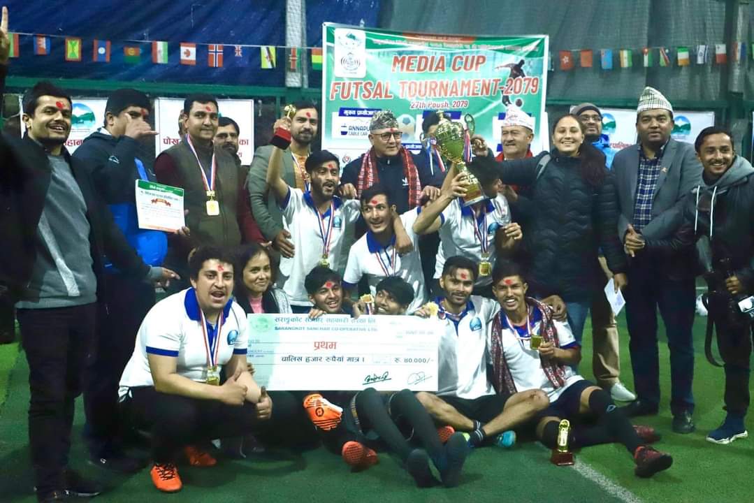 पोखरा। मिडियाकप फुटसल उपाधि पोखरा टेलिभिजनले जितेको छ । फाइनलमा रेडियो अन्नपूर्णलाई ५–४ गोलअन्तरले पराजित गर्दै पोखरा टेलिभिजनले उपाधि जितेको छ ।