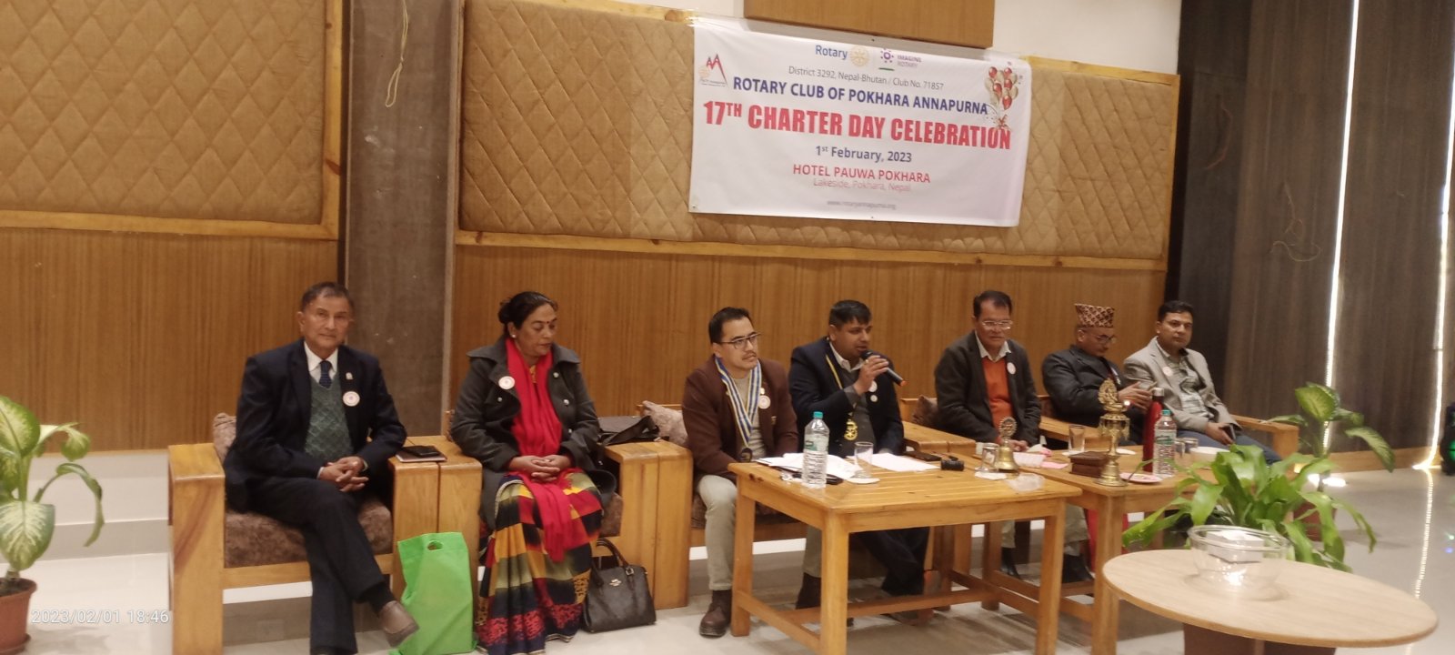 पोखरा । सन् २००६ मा सामाजिक कार्य गर्ने उद्धेश्यले स्थापना भएको रोटरी क्लब अफ पोखरा अन्नपुर्णले बुधबार स्थापनाको १७ औं वर्ष पार गरेको उपलक्ष्यमा एक कार्यक्रम गरेर मनाएको छ ।