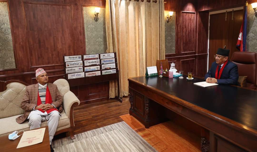 पाेखरा, फागुन २ गते । प्रधानमन्त्री पुष्पकमल दाहाल प्रचण्डसंग गण्डकी प्रदेश सरकारका मुख्यमन्त्री खगराज अधिकारीले भेट गरेका छन ।