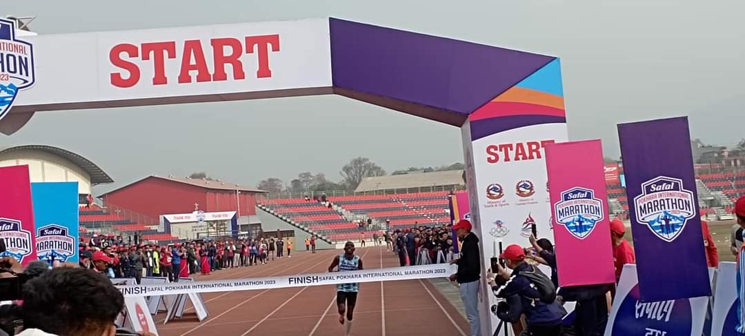 पोखरा । पोखरा म्याराथनको उपाधि केन्याका धावक स्टेफेन काेस्गेइले लगातार दोस्रो पटक जितेका छन् । शनिबार पोखरा रंगशालाबाट सुरु भएको दाैडमा उनले निर्धारित ४२.१९५ किमी दुरी २ घण्टा २० मिनेट ७ सेकेण्डमा पूरा गरेका थिए ।