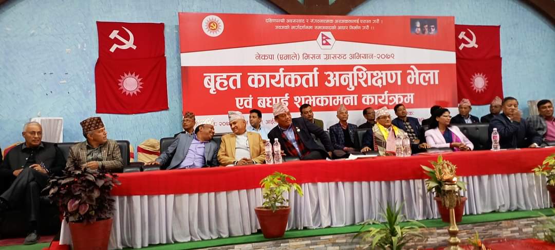 नेकपा एमाले कास्कीले पाेखरामा आयाेजना गरेकाे बृहत कार्यकर्ता अनुशिक्षण एवं बधाई शुभकामना कार्यक्रममा बाेल्दै माधव नेपालहरुले काँग्रेसकाे पछि लाग्ने अनि कम्युनिस्ट हाै भन्ने कुरा उचित नभएकाे बताए ।काँग्रेसकाे नेतृत्व स्विकार गरेपछि कम्युनिस्ट कसरी हुन्छ ? उनले प्रश्न गरे । उपाध्यक्ष ज्ञवालीले नेकपा एमालेलाई कुवाकाे पानी जस्तो नभई नदि जस्तो बनाउन मिसन ग्रास रुट कार्यक्रम सञ्चालन गरिएको बताए ।
