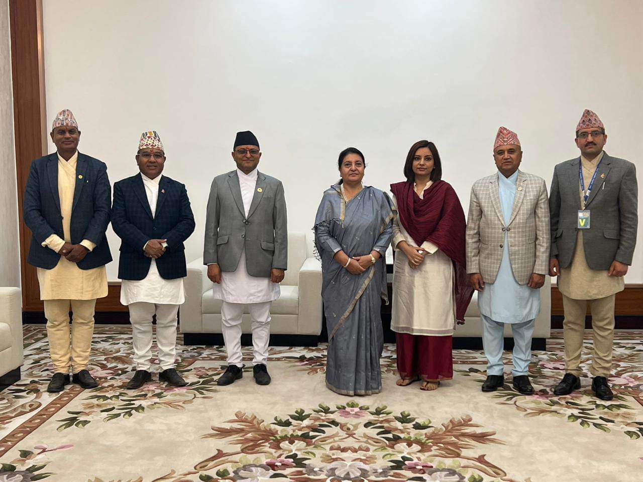 पाेखरा, फागुन १० गते । राष्ट्रपति विद्यादेवी भण्डारी, राष्ट्रिय सभाका अध्यक्ष गणेशप्रसाद तिमिल्सिना र गण्डकी प्रदेशका मुख्यमन्त्री खगराज अधिकारीबीच भेट भएको छ।