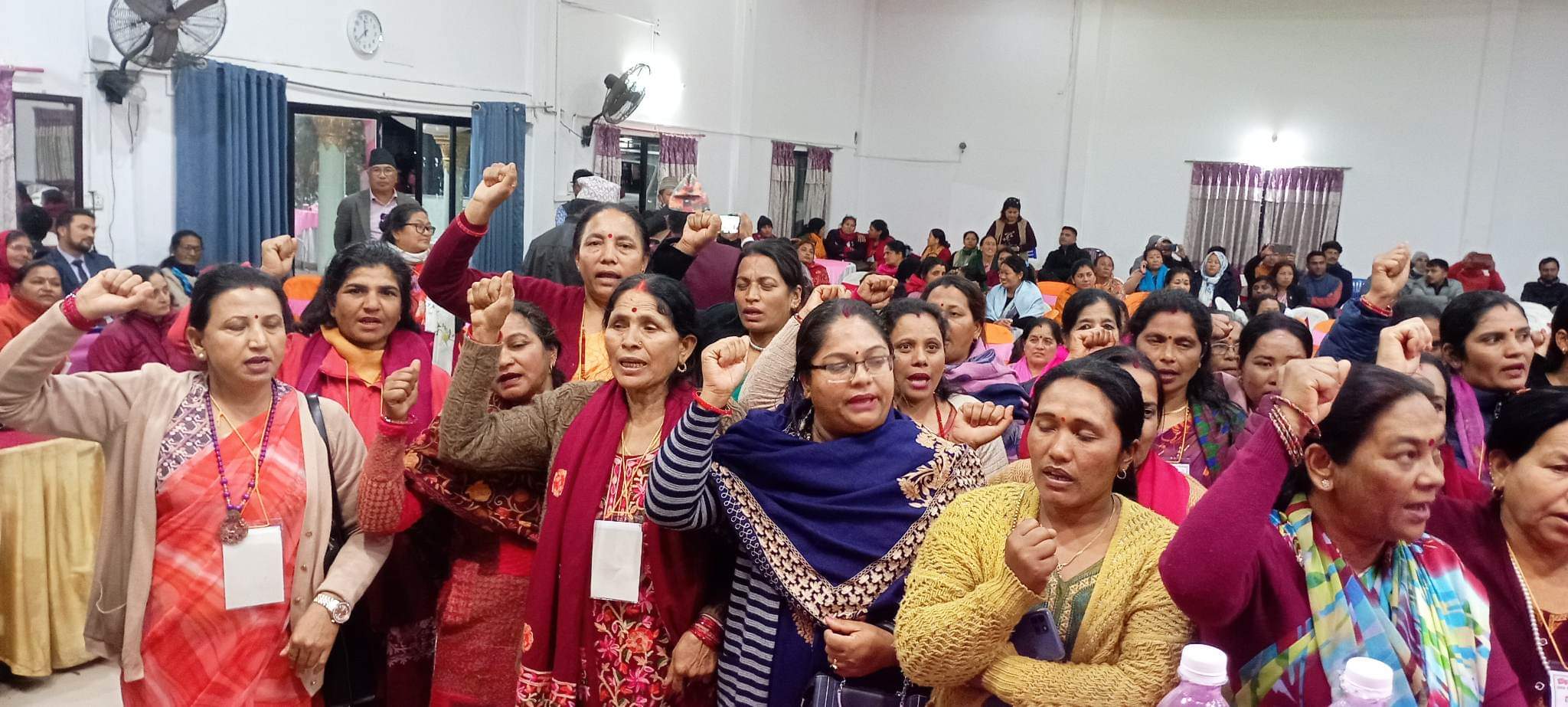 अधिवेशनले उपाध्यक्षमा कल्पना ढकाल क्षेत्री,उपाध्यक्षमा शान्ति सुवेदी, सचिवमा पार्वती कार्की, काेषाध्यक्षमा कृष्ण कुमारी गुरुङर सहसचिवमा सरिता सुवेदी निर्विरोध निर्वाचित भए । सदस्यहरुमा कल्पना आचार्य बास्तोला,सरिता सुवेदी,हरिमाया परियार,कविता गुरुङ,राजकुमारी भुजेल,सिमा कोइराला कल्पना मुल्मी तीलमाया सुवेदी भण्डारी,आश माया विक सरस्वती ढुगाना,शारदा भटराई मञ्जुसिंह घताने, शान्ति शर्मा, मिरा तुलाचन,तारा सापकोटा, कृष्णकुमारी गुरुङ, जानुकादेवी भटराई, तुलसी सुवेदी धिताल, शोभा आचार्य, नन्दमाया पौडेल,राधा बयलकोटी नेपाली, कृष्णकुमारी गुरुङ , दुर्गा नेपाल, सरिता बास्तोला, सृजना सुनार, शोभा भुजेल, पार्वती कार्की थापा, दिलमाया भण्डारी, हरिमाया सुनार,किरण गुरुङ, सविना खड्का, लक्ष्मी अधिकारी, सरिता गायक, सृजना ढुंगाना, देवी तिमिल्सिना, रुवि परियार, सन्ध्या गुरुङ, मिना थापा, सरस्वाती बास्तोला, गिता भटराई भण्डारी, हेमाया तामाङ, लक्ष्मी बास्तोल, अञ्जिता बास्तोला , रमा आचार्य, राधादेवी पौडेल, मिरा अधिकारी पार्वती शर्मा सुवेदी, पार्वति अधिकारी, विमला पौडेल, रिता सुनार, लक्ष्मी त्रिपाठी, जेनिसा परियार, सोचना केसी, विपना श्रेष्ठ सुवेदी, सरस्वती ढुगाना, सिता ढुंगना, सिला भण्डारी,उमा परियार, शोभा रानाभाट, सृजना त्रिपाठी, सरु विक, पार्वती भुजेल, शिवकुमारी सुवेदी, शुकमाया ढुगाना, शान्ता दुलाल, भिम कुमारी पुन, भगवती अधिकारी,संगीता अधिकारी, विष्णुमाया धमला, पार्वती विश्वकर्मा, चन्द्रमाया घर्ती, धनकुमारी बानियाँ, अञ्जु भण्डारी रहेका छन् ।