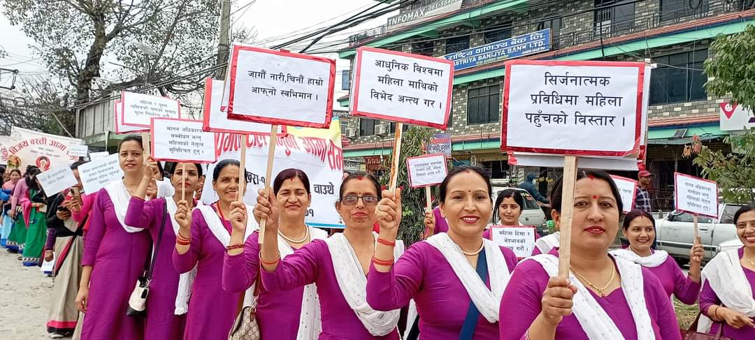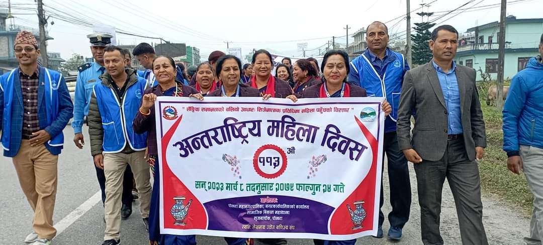 पाेखरा महानगर २७ तालचाेकबाट र्यालि सहित पाेखरा उद्योग वाणिज्य संघकाे सभाहलमा पुगेर आैपचारिक कार्यक्रममा परिणत भएकाे थियाे ।कार्यक्रममा बाेल्दै पाेखरा महानगरपालिकाका मेयर धनराज आचार्यले महिला पुरुष वीचकाे असमानता अन्त्य गर्दै समतामुलक समाज निर्माण गर्नुपर्नेमा जाेड दिनुभयाे । उहाँले महिलालाई कुनै अधिकार नदिएकाे अवस्थामा महिलाहरुले  अधिकार र समान ज्यालाका लागि गरेकाे आन्दाेलनले विश्व ब्यापी  रुप लिएर दिवसका रुपमा मनाउन थालिएकाे बताउनु भयाे ।
