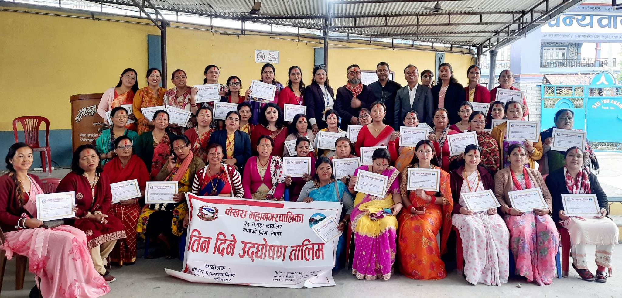 दुबै ठाउँमा आयोजित तालिम समापन कार्यक्रमका प्रमुख अतिथि पोखरा–२६ का वडाध्यक्ष नरेन्द्र थापाले महिलाहरुको व्यक्तित्व र नेतृत्व विकास गर्दै उनीहरुलाई बोल्न सक्ने र कार्यक्रम सञ्चालन गर्न सक्ने बनाउने उद्देश्यले तालिम आयोजना गरिएको बताए ।