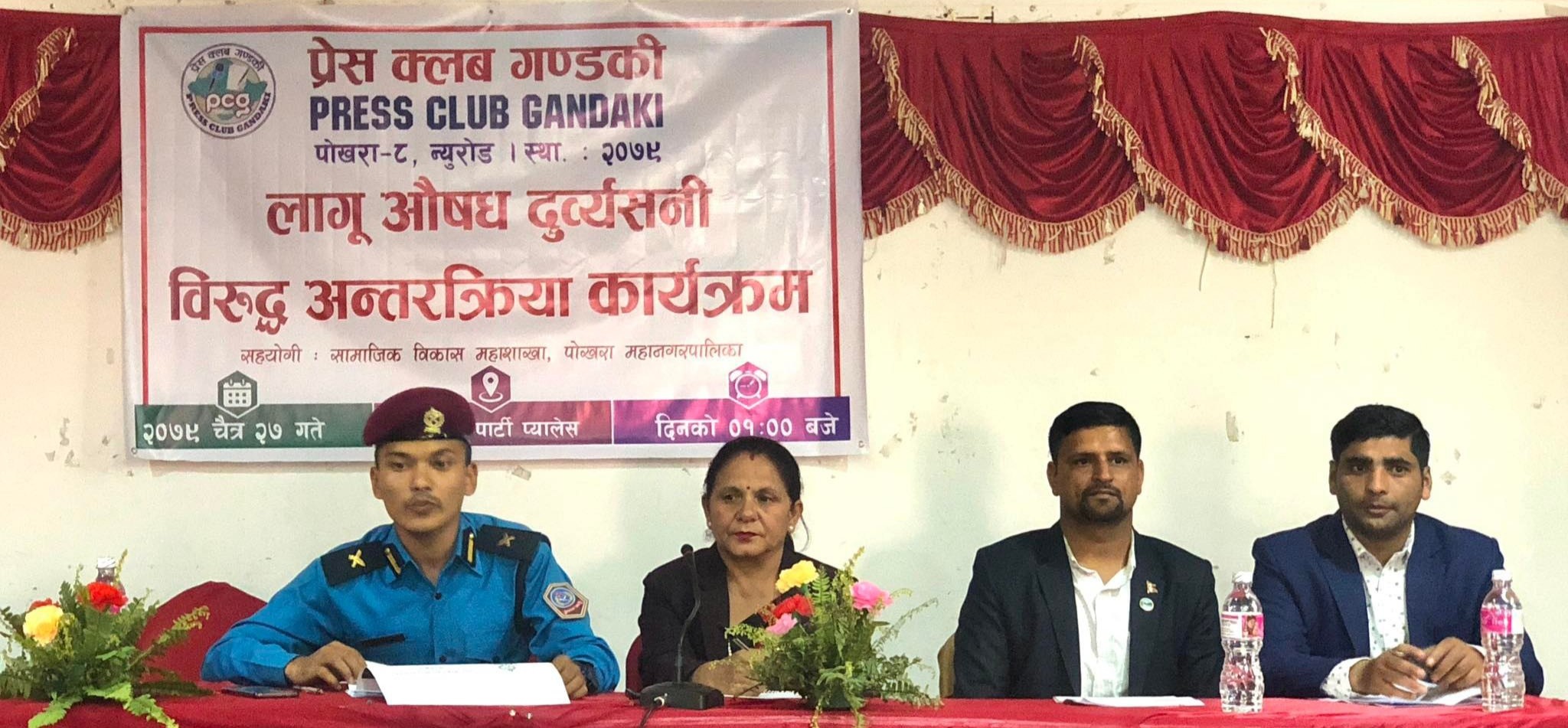 कार्यक्रममा पोखरा महानगरपालिका कार्यपालिका सदस्य एवं सामाजिक विकास समितका सदस्य धनकुमारी पोखरेल तिमिल्सेनाले लागु औषध बारे परिवारसम्मै सचेतना जगाउनुपर्ने खाँचो औल्याइन । उनले कुलतमा बालबालिका फस्ने गरेको बताउदै त्यसबाट जोगाउन साझा प्रयास आवश्यक रहेको उल्लेख गरिन ।