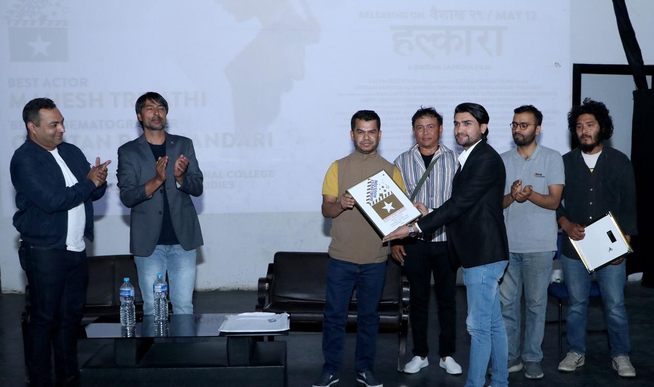 बिहिबार अस्कर इन्टरनेशनल कलेजमा विद्यार्थीहरुसँग अन्तर्क्रियाको कार्यक्रम गर्दै अवार्ड प्रदान गरिएको हो । अस्कर कलेजका प्रिन्सिपल रामराजा दाहाल, सिनेमाटोग्राफर राजेश श्रेष्ठ, अस्कर कलेजका एकेडेमिक डिरेक्टर मनोजबाबु पन्त, एकेडेमिक कोअर्डिनेटर नवनिधि दाहाल र हल्काराुका निर्देशक विक्रम सापकोटाले त्रिपाठी र राजभण्डारीलाई अवार्ड हस्तान्तरण गरेका थिए ।