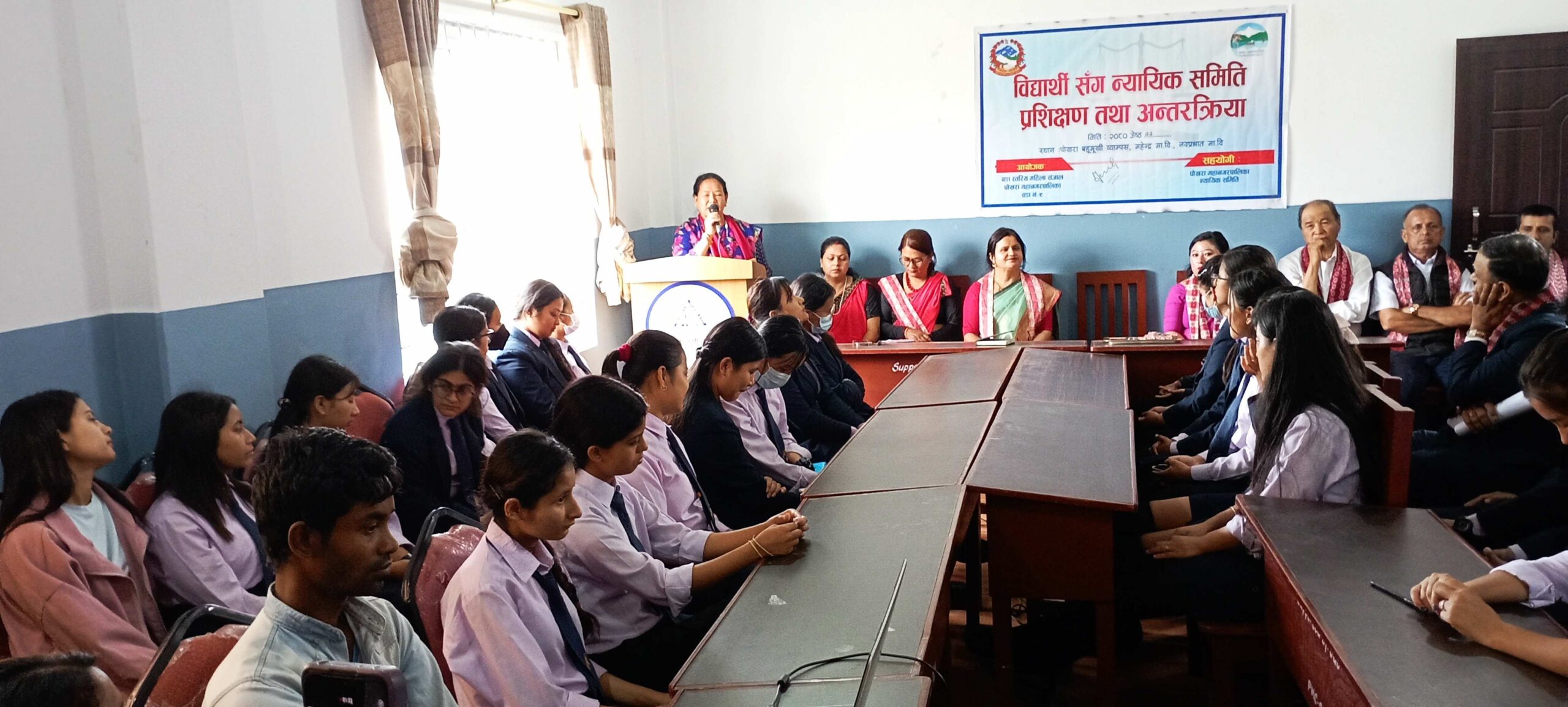 वडा स्तरिय महिला सञ्जालको आयोजनामा पहिलो क्याम्पसका विद्यार्थीसँग अन्तरक्रिया तथा प्रशिक्षण कार्यक्रम आयोजना गरिएको न्यायिक समिति सदस्य एव पोखरा ९ का सदस्य भावना श्रेष्ठले जानकारी दिनुभयो । वडा स्तरिय महिला सञ्जालका अध्यक्ष कमला केसीको अध्यक्षमा भएको कार्यक्रममा पोखरा बहुमुखी क्याम्पसका क्याम्पस प्रमुख शिशुकला पराजुली, सञ्जालका उपाध्यक्ष सरिता बास्तोला लगायतले बोल्नुभएको थियो । “न्यायिक सम्पादन सर्वसाधारणका लागि खर्चिलो र झन्झटिलो भएकाले सरल र सर्वसुलभ रुपमा न्याय प्रदान गर्न न्यायिक समितिको व्यवस्था गरिएको बताउदै यसको प्रभाकारीता बढाउन कार्यक्रम आवश्यक रहेको न्यायिक समिति सदस्य कालिदास पोखरेलले बताउनुभयो ।