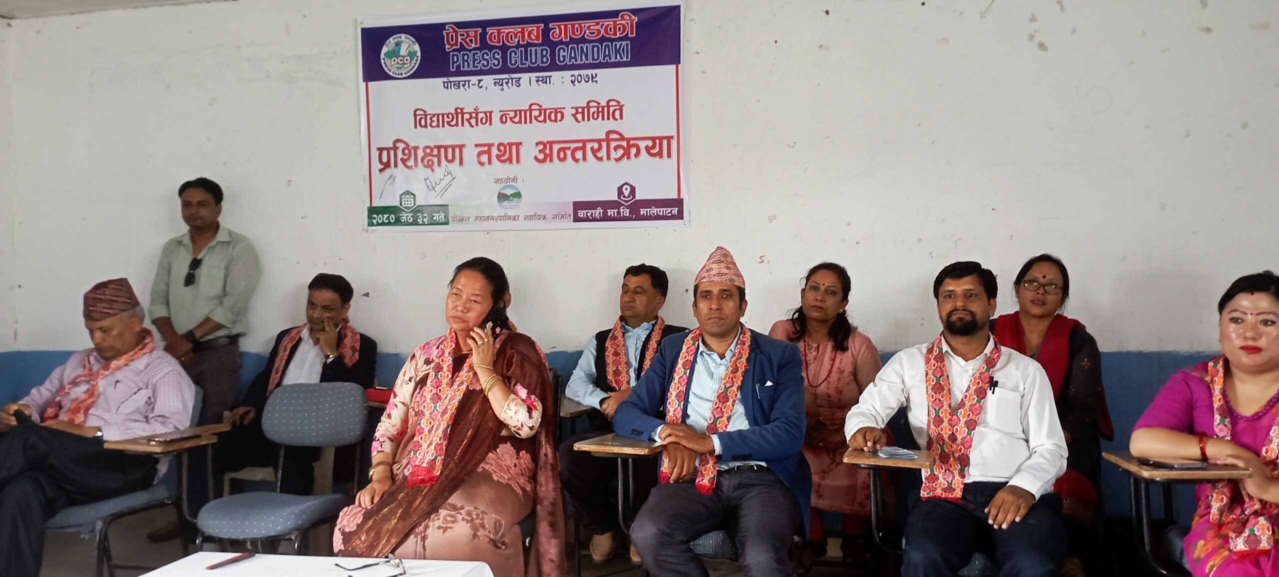 प्रेस क्लब गण्डकीकाे आयाेजना र न्यायिक समितिकाे सहकार्यमा विद्यालय स्तरियमा ‘विद्यार्थीसँग न्यायिक समिति, प्रशिक्षण तथा अन्र्तक्रिया’ बिहीवार बाराही माविमा गरिएकाे हाे ।