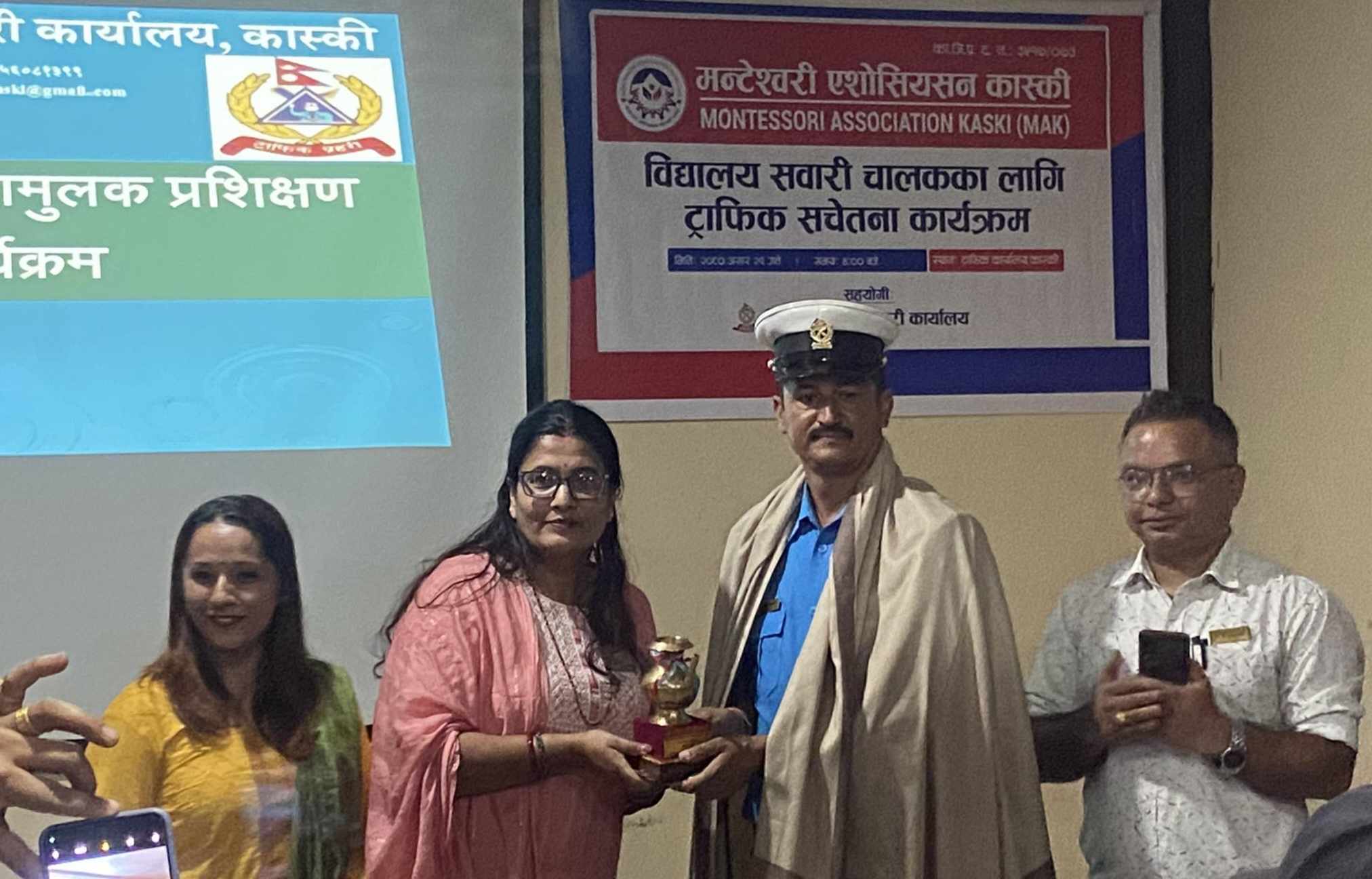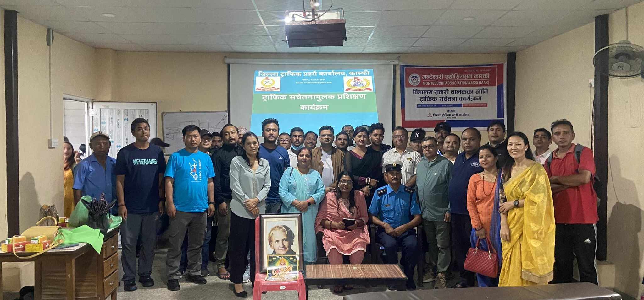 पाेखरा, असार ३१ गते ।मन्टेश्वरी एशोसियसन कास्कीलको आयोजनामा संस्थासंग आवद्ध मन्टेश्वरी विद्यालयका चालकहरुलाई लक्षीत गर्दै ट्राफिक सचेतना कार्यक्रम सम्पन्न गरेको छ ।