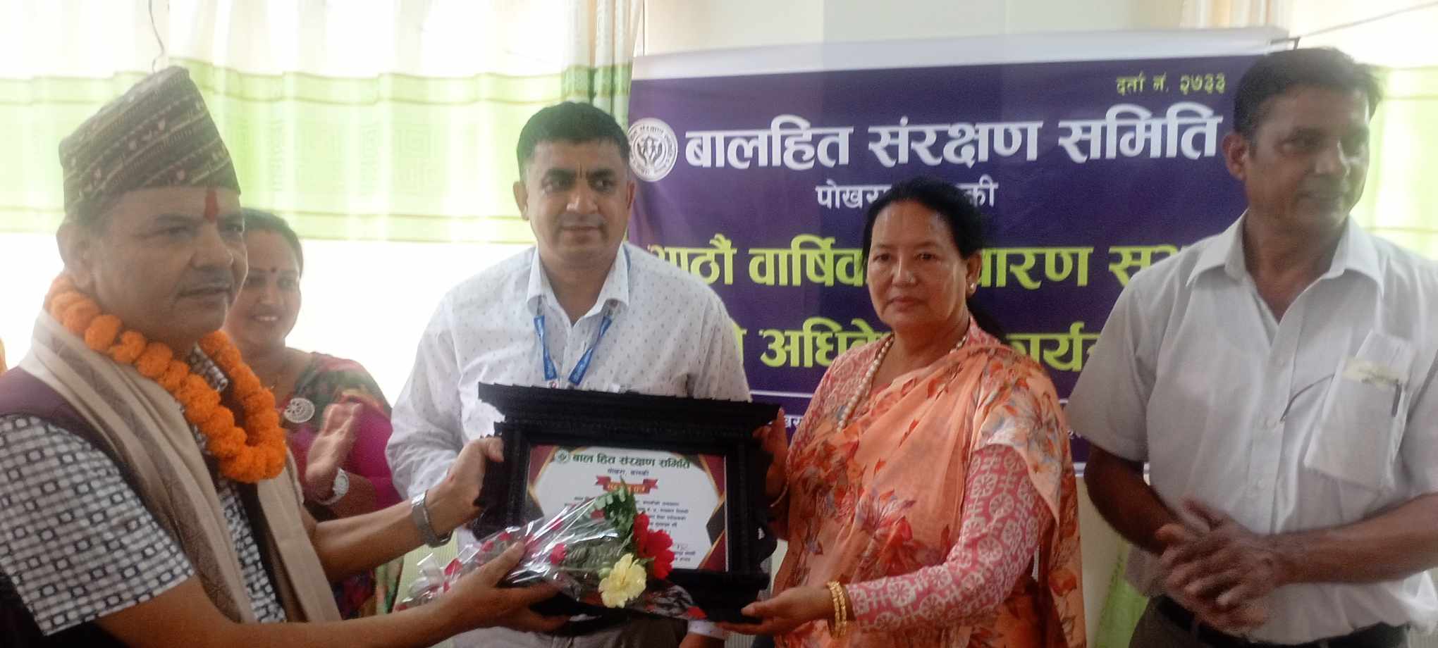 पाेखरा, साउन २६ गते । बालहित संरक्षण समिति कास्कीकाे आठाै साधारण सभा एवं चाैथाे अधिबेशन शुक्रबार सम्पन्न भएकाे छ । अधिवेशनले गाेकुलबहादुर कार्कीकाे अध्यक्षतामा ९ सदस्यीय कार्यसमिति सर्वसम्मत चयन गरेकाे हाे ।