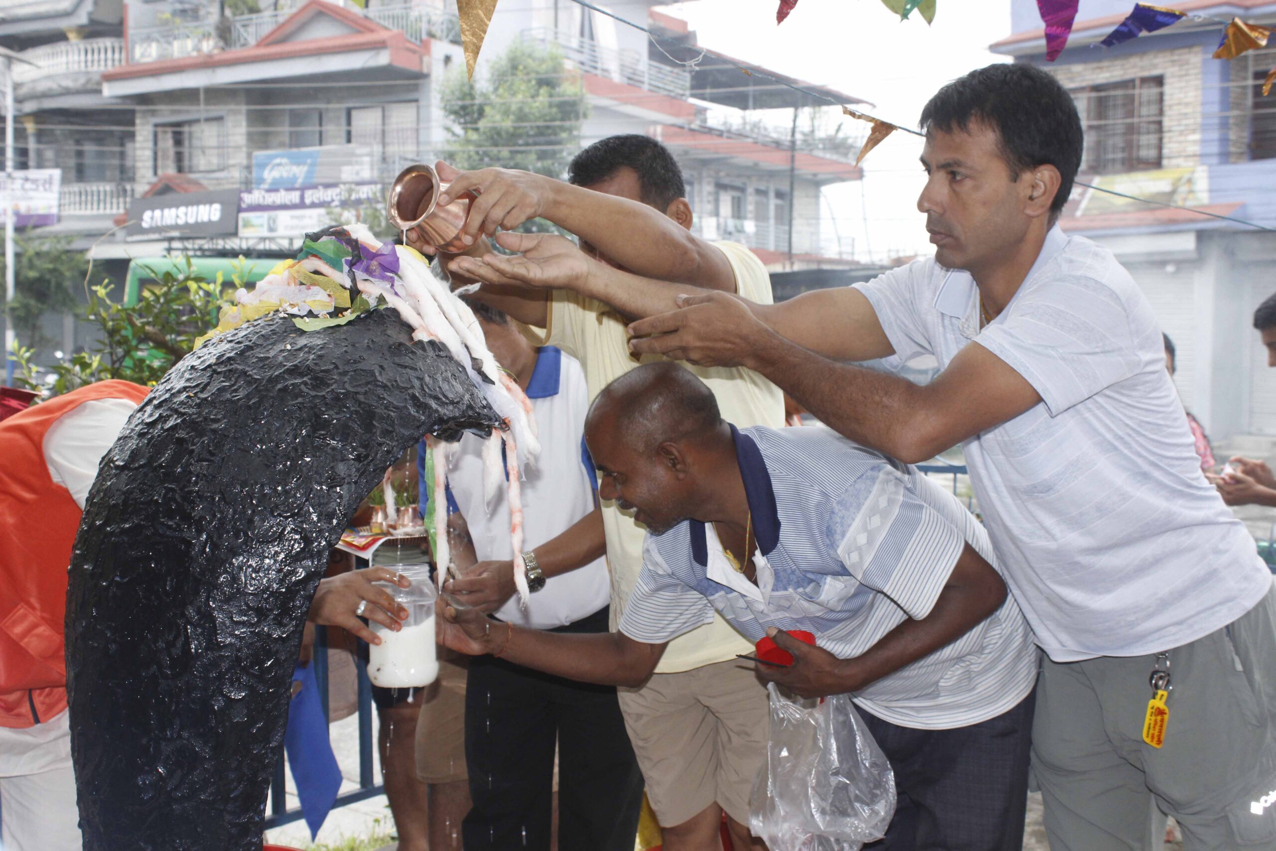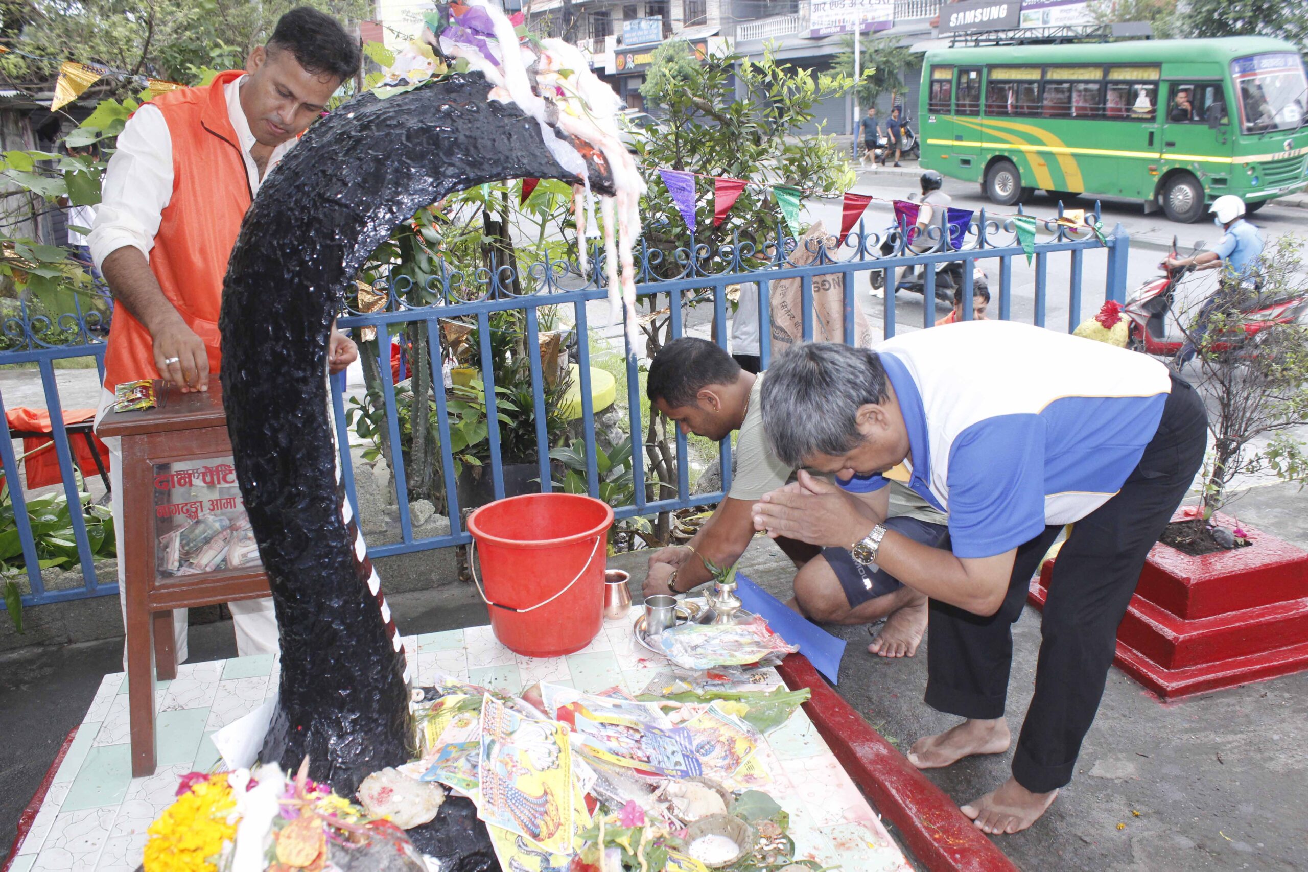 पोखरा, भदौ ४ गते ।नागपञ्चमी पर्व आज परम्पराअनुसार नागको पूजा गरी मनाएको छ ।यो पर्व प्रत्येक वर्ष श्रावण शुक्ल पञ्चमीको दिन मनाइन्छ । यसवर्ष साउनमा अधिकमास परेका कारण सौरमासअनुसार भदौमा यो पर्व परेको हो ।