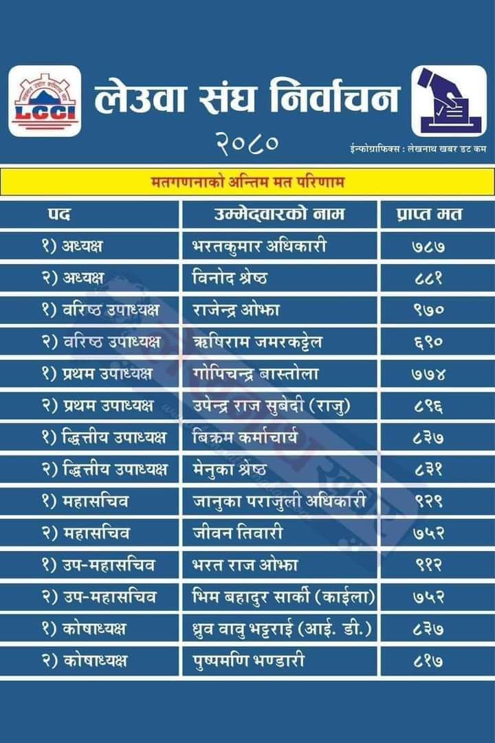 पोखरा, भदौ २५ गते / लेखनाथ उद्योग वाणिज्य संघको अध्यक्षमा बिनाेद श्रेष्ठ निर्वाचित भएका छन ।