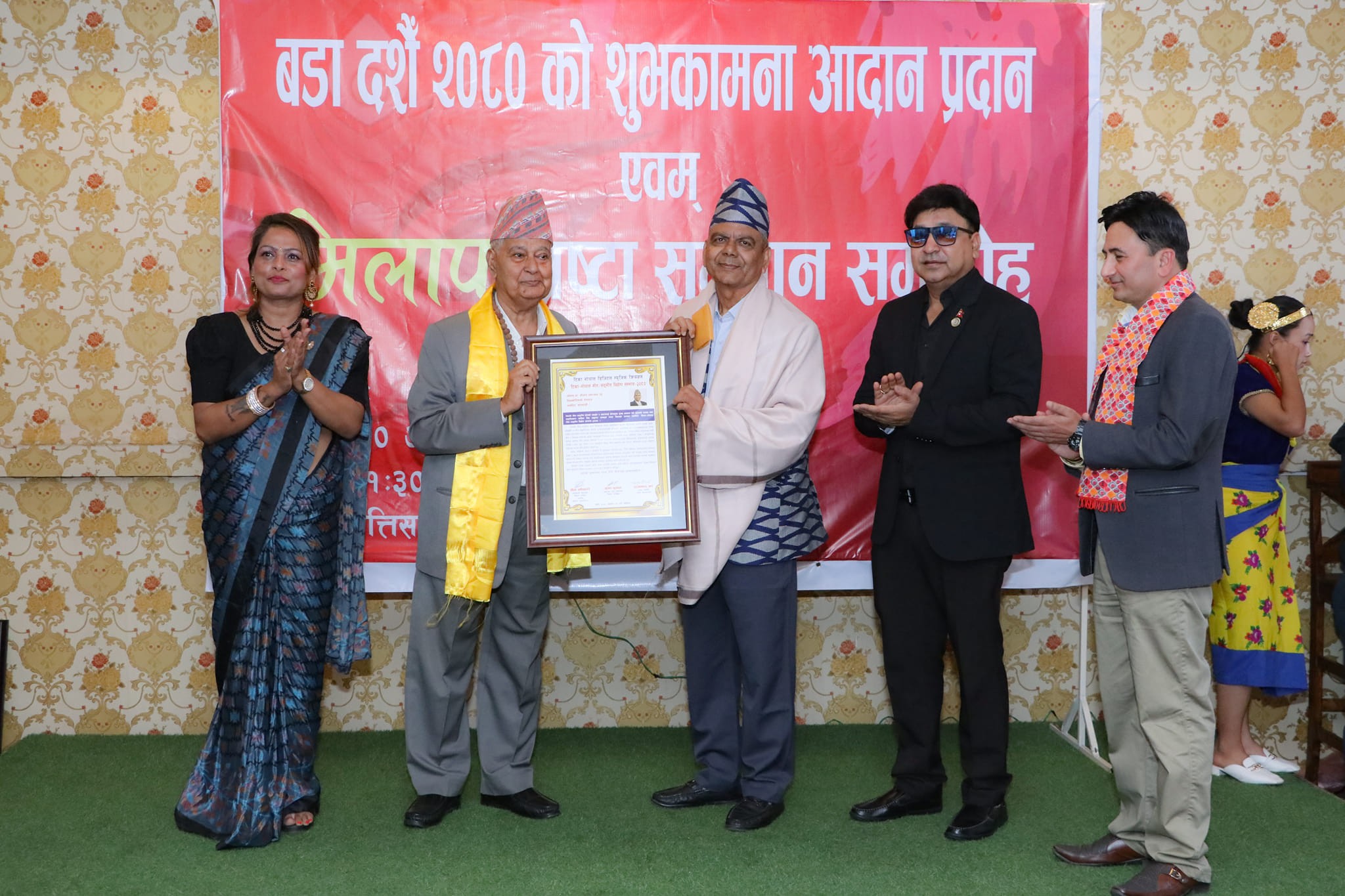 काठमाडौं । डा डीआर उपाध्यायलाई ‘टीका गोपाल गीतसङ्गीत विशेष सम्मान–२०८०’ प्रदान गरिएको छ । बिहीबार काठमाडौंमा भएको एक विशेष समारोहमा प्रथम उपराष्ट्रपति परमानन्द झाले डा. उपाध्यायलाई सो सम्मान पुरस्कार अर्पण गर्नुभएको हो ।