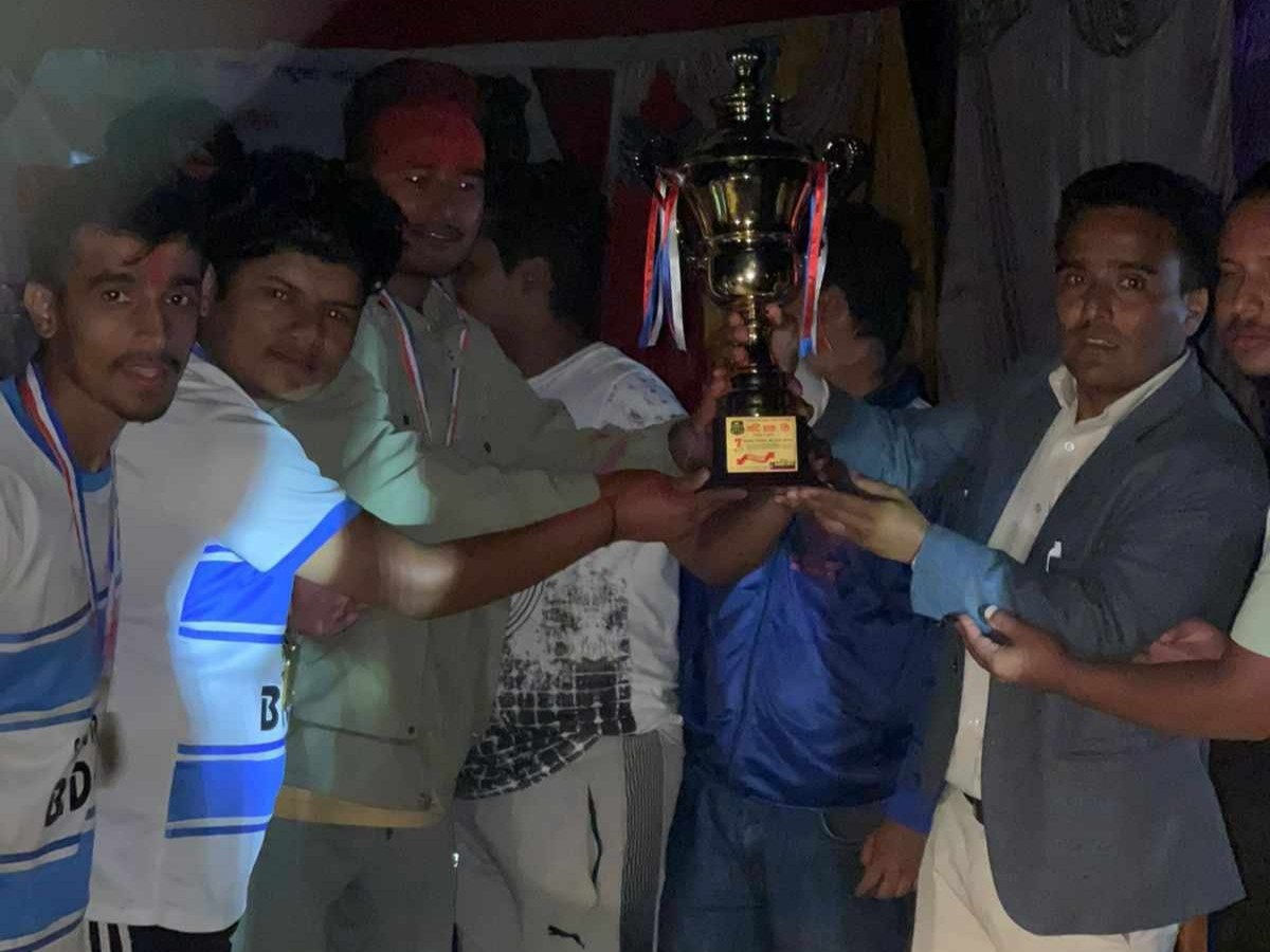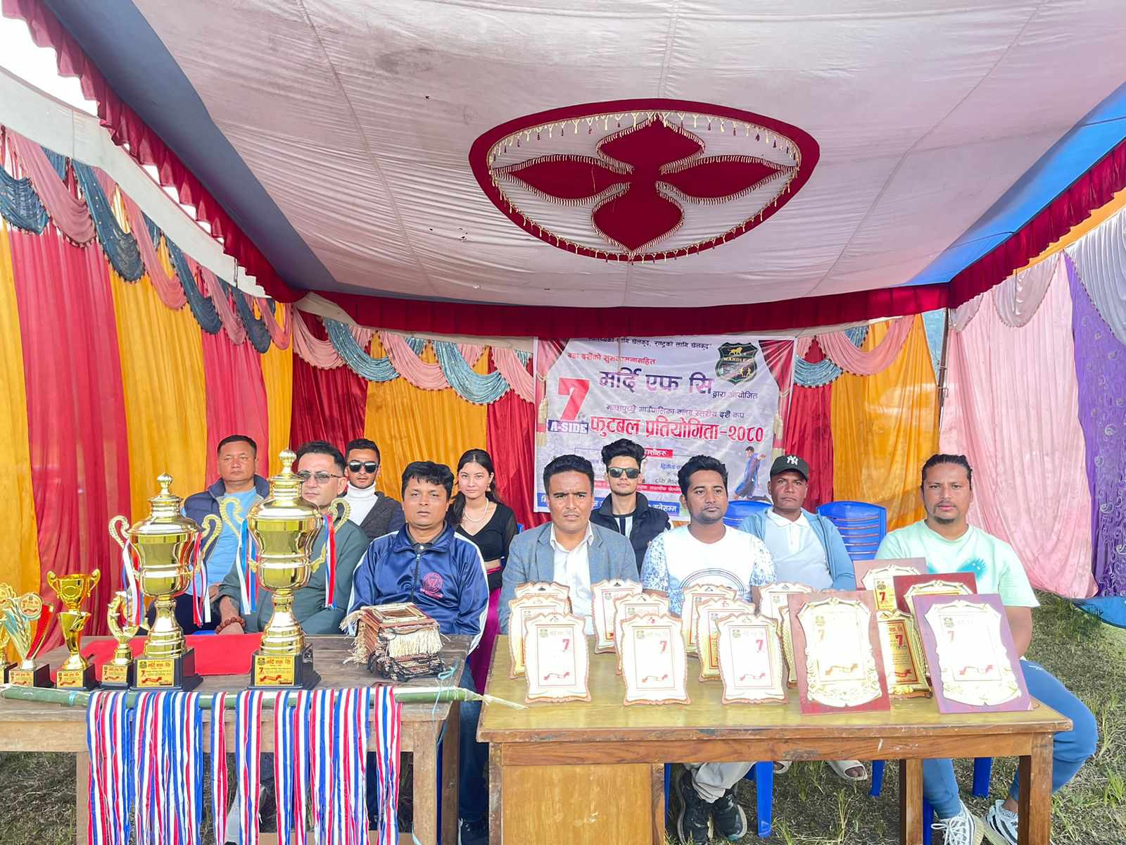 माछापुच्छ्रे गाउँपालिका २३ टिम सहभागी रहेको खेलमा मर्दी एफ सि ले ह्याप्पी ब्रदर्स लाई सडेन डेथमा पराजित गर्दै नगद  बीस हजार सहित टर्फी मेडल प्रमाणपत्र हात पारेको छ भने उपबिजेता ह्याप्पी ब्रदर्सले दश हजार सहित टर्फी मेडल र प्रमाणपत्रमा चित्त बुझाउन बाध्य भयाे ।