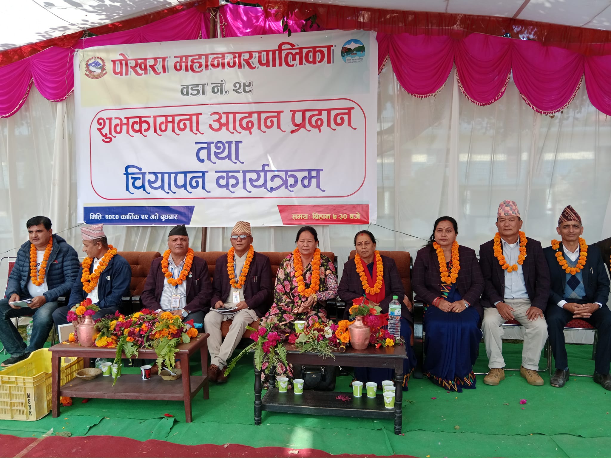 पोखरा महानगरपालिका वडा नम्बर २९ का अध्यक्ष श्रीप्रसाद गुुरुङको अध्यक्षतामा भएको कार्यक्रममा पोखरा ३१ का वडा अध्यक्ष ढकनाथ कँडेल, पोखरा २९ का निर्वतमान वडा अध्यक्ष चेतबहादुर गुुरुङ, नेकपा एमाले वडा कमिटि अध्यक्ष प्रमोद भण्डारी, नेपाली काँग्रेस वडासभापति दिपकमणी भण्डारी, माओबादी केन्द्रका अध्यक्ष लालबहादुर सुनार, रास्वपा वडा उपाध्यक्ष दुुर्गा राना, लेखनाथ उद्योग वाणिज्य संघका उपमहासचिव जानुका अधिकारी, कार्यपालिका सदस्य निर्मला पौडेल लगायतले भनाई राख्खेका थिए ।कार्यक्रमको संञ्चालन वडासचिव आविष्कार पौडेलले गरेका थिए । कार्यक्रममा नृत्य समेत प्रस्तुत गरिएको थियो ।
