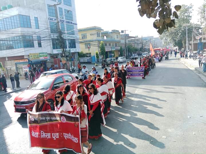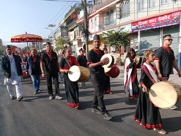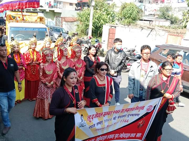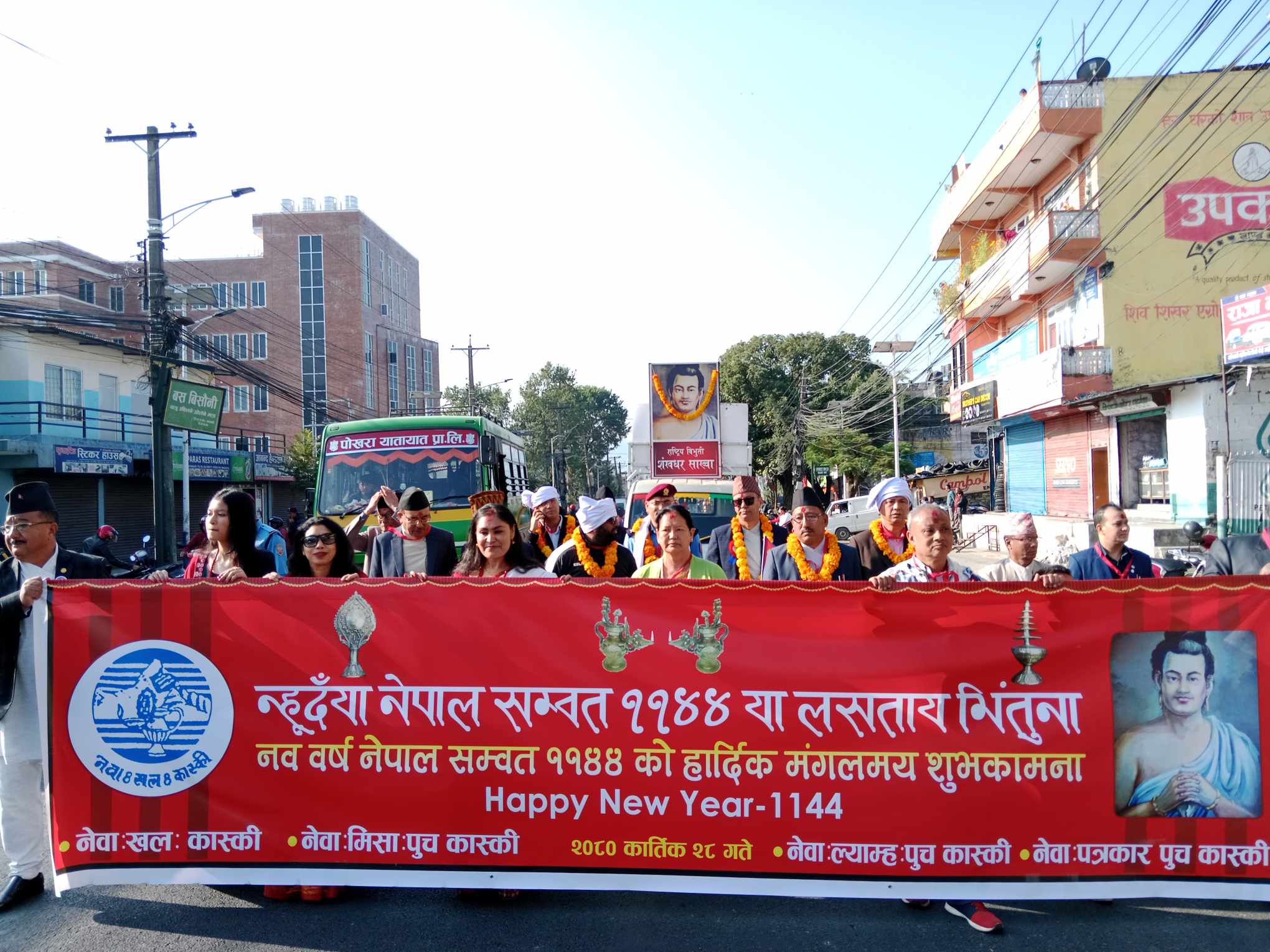 नयाँ वर्ष नेपाल संवतकाे अवसरमा पाेखरामा र्‍याली