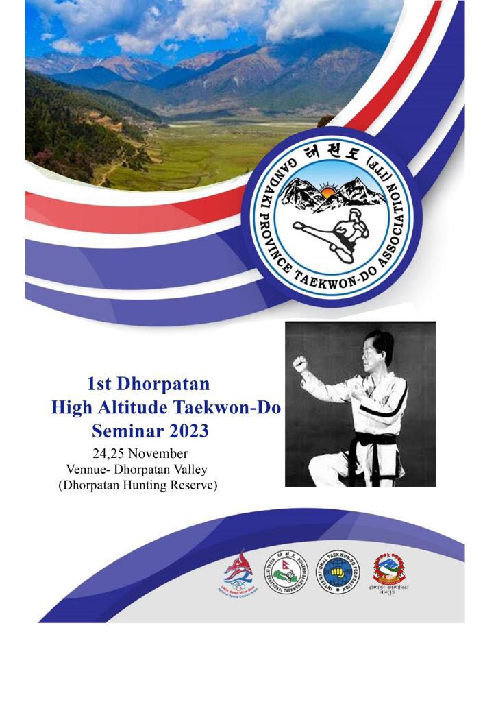 पोखरा, मंसिर ४ गते । गण्डकी प्रदेश आईटिएफ टेक्वान्दो संघको आयोजनामा मंसिर दोश्रो ‘प्रथम ढोरपाटन हाई अल्टिच्यूड टेक्वान्दो सेमिनार–२०२३’ हुने भएको छ ।