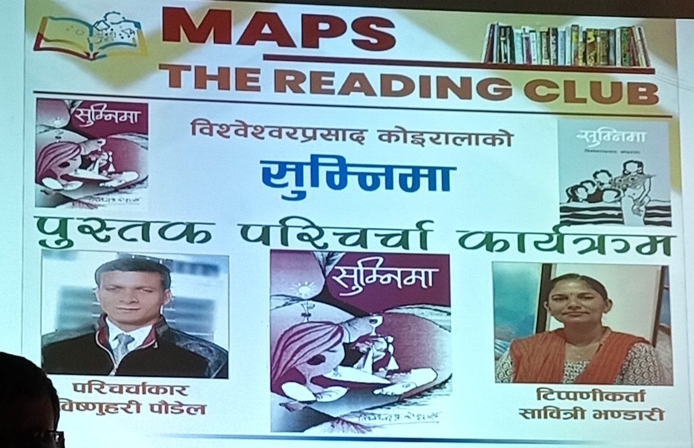 पोखरा । पोखरा महानगरपालिका वडा नं २९ मा रहेको दीपशिखा सामुदायिक पुस्तकालयमा म्याप्स द रिडिङ्ग क्लबको आयोजना तथा दीपशिखा पुस्तकालयको व्यवस्थापनमा उपन्यासकार विश्वेश्वरप्रसाद कोइरालाको ‘ सुम्निमा ’ उपन्यासको परिचर्चा कार्यक्रम सम्पन्न भएको छ ।