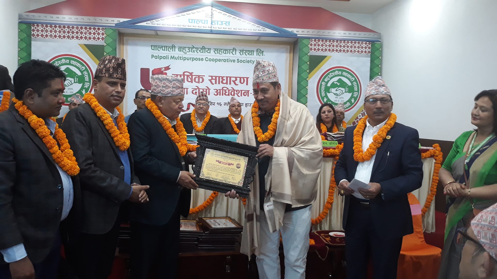 सो अवसरमा सहकारीमा निवर्तमान अध्यक्ष एवं पाल्पा हाउसका अध्यक्ष कुलप्रसाद घिमिरेलाई संस्थागत सम्मान गरियो । उत्कृष्ट कारोबारकर्तामा सेयर सदस्य बलबहादुर राउत सम्मानित भए ।सो अवसरमा संस्थाका सेयर सदस्यका एसइई उत्तीर्ण छोराछोरीलाई सम्मान गरियो ।