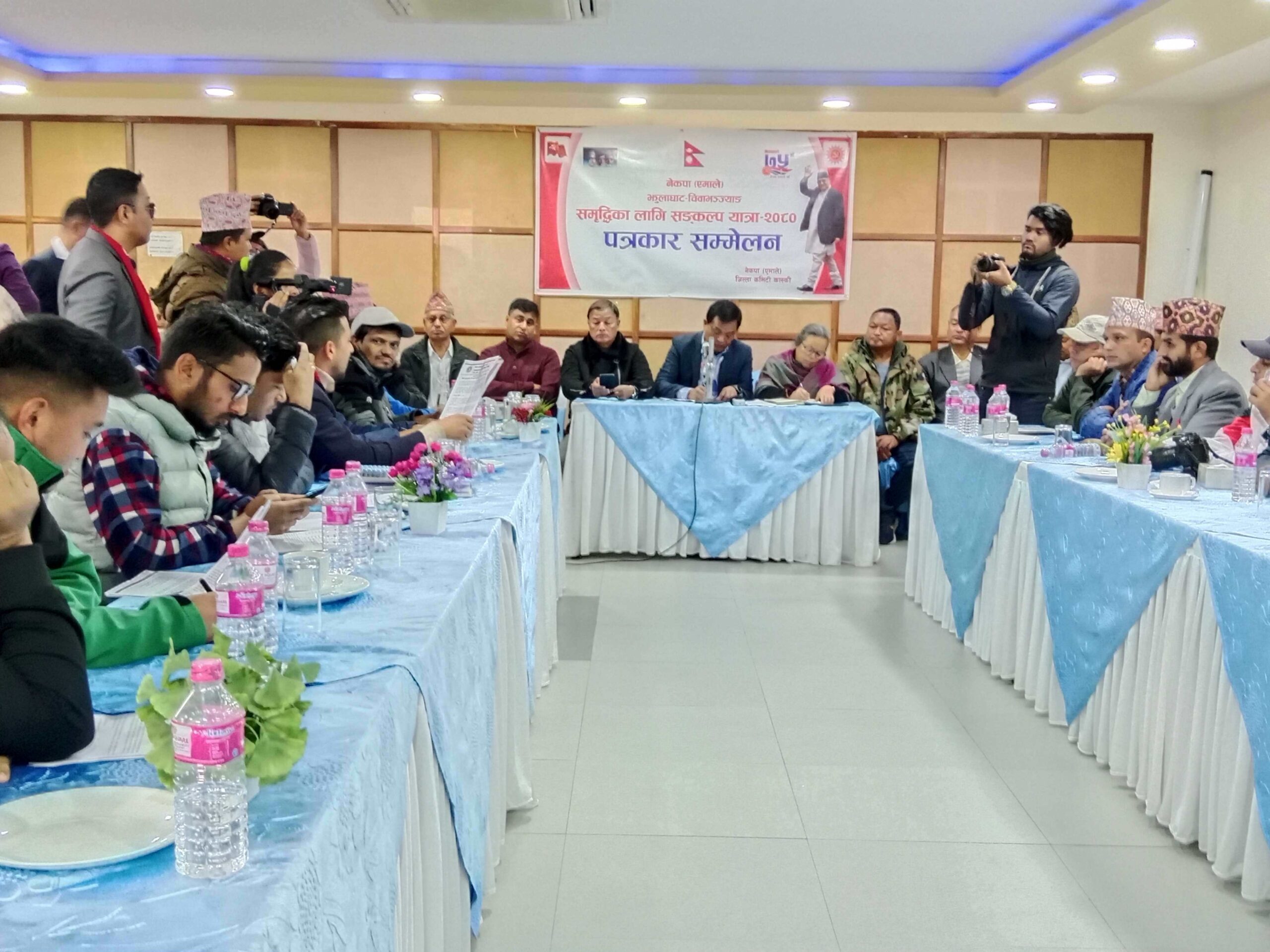 पोखरा,मंसिर १९ गते ।नेकपा एमालेको बैतडीको झुलाघाटदेखि पाँचथरको चिवाभन्ज्याङ सङ्कल्प यात्राको कास्कीमा आउने भएको छ । बैतडीको झुलाघाटबाट सुरु भएको अभियानको आठौ दिन मंसिर २१ गते टोली कास्की आइपुुग्ने भएको हो । नेकपा एमाले कास्कीले आज पोखरामा पत्रकार सम्मेलनको आयोजना गरी मंसिर २१ गते अभियानको टोली कास्की आउने र २२ गते यहाँबाट लम्जुुङका लागि विदाई गरिने एमाले कास्कीका अध्यक्ष मनबहादुर गुुरुङले जानकारी दिए ।