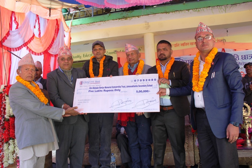 म्याग्दी, पुुस ८ गते । म्याग्दीको बेनी नगरपालिका वडा नम्वर ६ अर्थुङ्गे स्थित जामुनाखर्क माविमा रु ५ लाख राशीको ‘हिरा बहादुर बानियाँ छात्रवृत्ति कोष’ स्थापना गरिएको छ ।बेनपा ६ निवासी समाजसेवी, शिक्षाप्रेमी स्व. हिरा बहादुर बानियाँको स्मृतिमा उहाँका छोराहरु प्रकाश बानियाँ, किरण बानियाँ र सम्पूर्ण परिवारले रु ५ लाखको छात्रवृत्ति कोष स्थापना गर्नुभएको हो ।