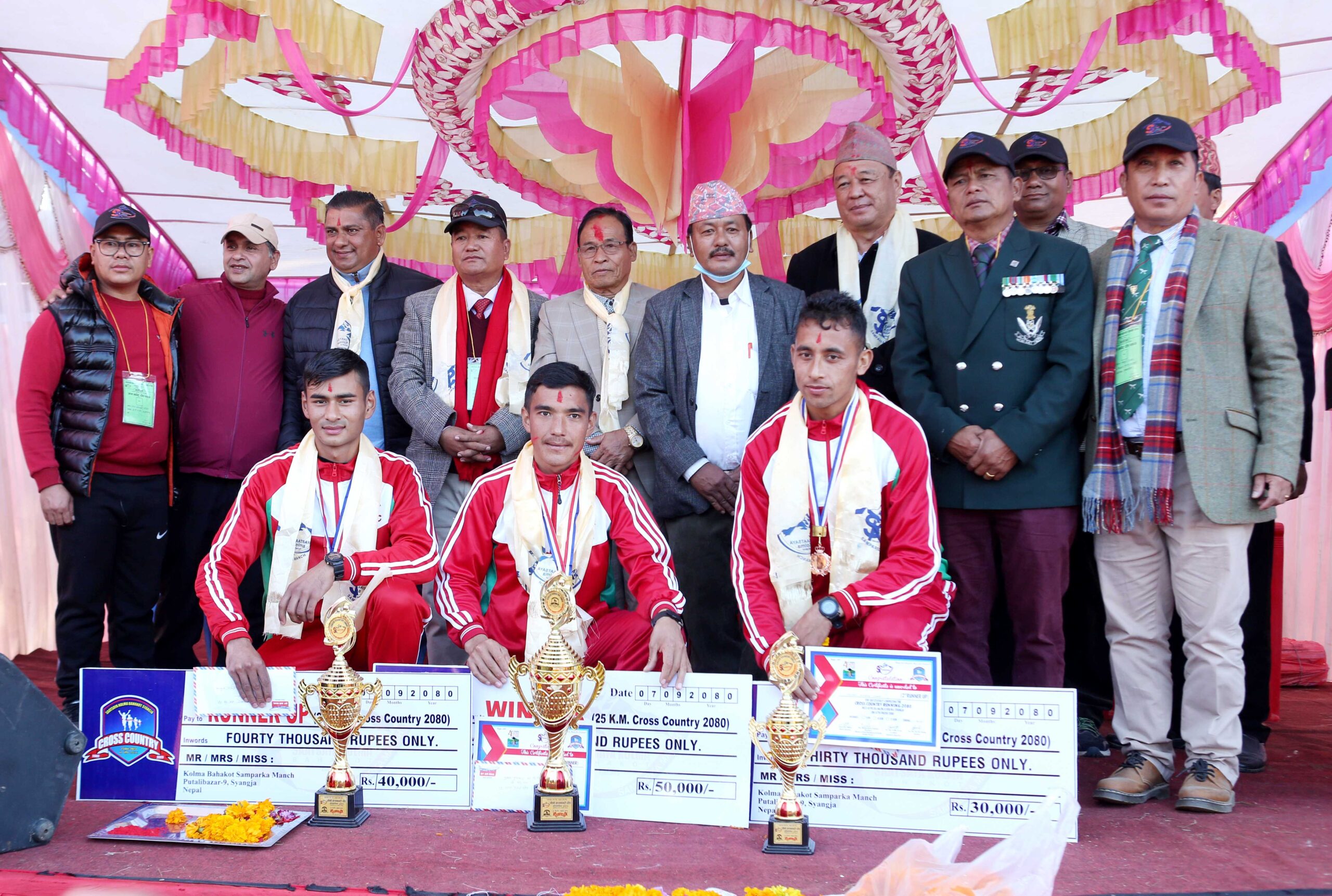 निर्धारित दुरि २५ कि मि १ घण्टा ३१ मिनेट ५६ सेकेन्डमा पार गर्दै आर्मीका गोपाल तामाङले उपाधि संगै नगद ५० हजार, ट्रफी , मेडल र प्रमाणपत्र प्राप्त गरे । त्यस्तै निर्धारित दुरि १ घण्टा ३३ मिनेट ४३ सेकेण्डमा पार गर्दै आर्मीकै सञ्जय श्रेष्ठ प्रतियोगिताका उपबिजेता बने । श्रेष्ठले नगद ४० हजार ट्रफी, मेडल र प्रमाणपत्र प्राप्त गरेभने प्रतियोगितामा निर्धारित दुरि १ घण्टा ३४ मिनेट २ सेकेन्डमा पार गर्दै आर्मीकै सुशील कुमार शाहीले तेस्रो स्थान सहित नगद ३० हजार ट्रफी, मेडल र प्रमाणपत्र हात पारे ।